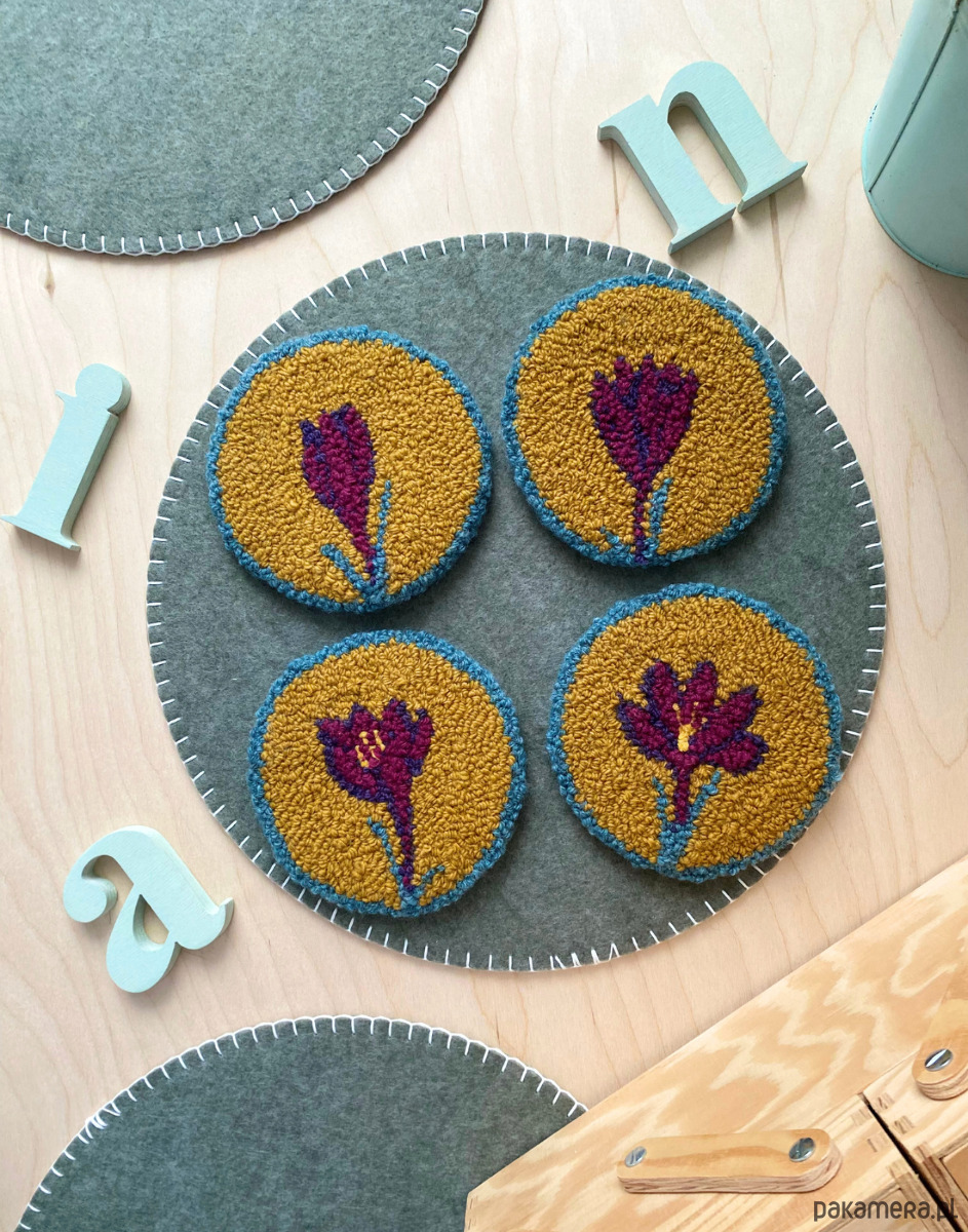 Chcesz mieć wiosnę w swoim domu przez cały rok? Możesz to zrobić dekorując wnętrza odpowiednimi dodatkami. Krokusy zwiastują porę roku, która budzi do życia i napełnia optymizmem. Dlatego pojawiły się na podkładkach od TakieTam. Każda z podkładek to mała opowieść, a wszystkie razem pokazują, jak rozkwita krokus. Podkładki oryginalnie ozdobią Twój stół. Zostały wyhaftowane techniką punch needle. Podstawą tej techniki są dekoracyjne pętelki, które możesz zauważyć na zdjęciach. To one sprawiają, że ozdoby punch needle są naprawdę niezwykłe. Podkładki na stół Krokusy nigdy nie zwiędną! Wpadły Ci oko? Kliknij i dodaj do koszyka!