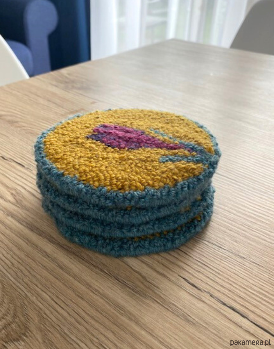- podkładki dodatkowo zostały dekoracyjnie obszyte włóczką
