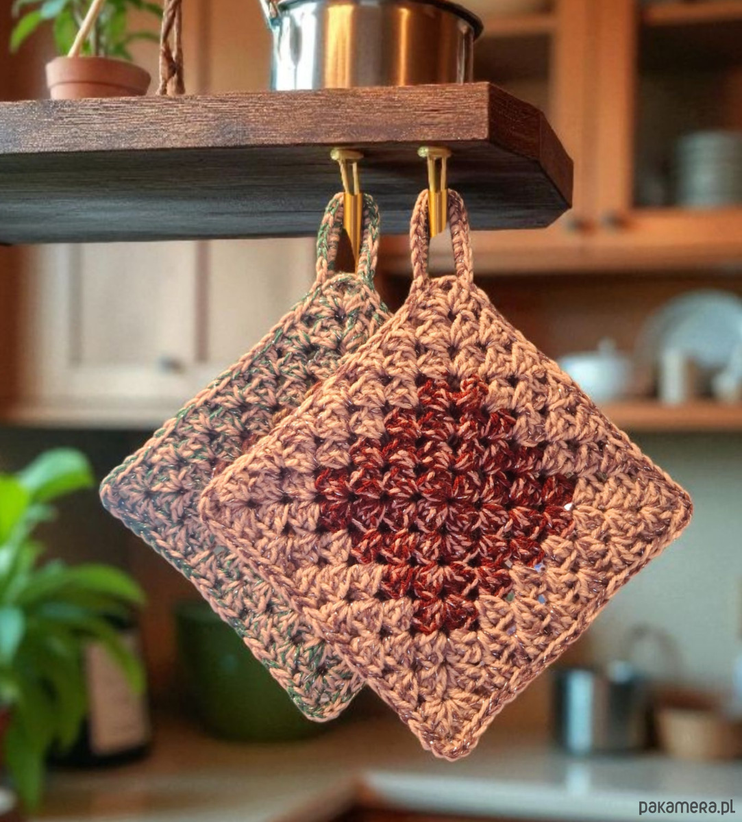 Ręcznie robione szydełkowe podkładki kuchenne – komplet 2 szt.