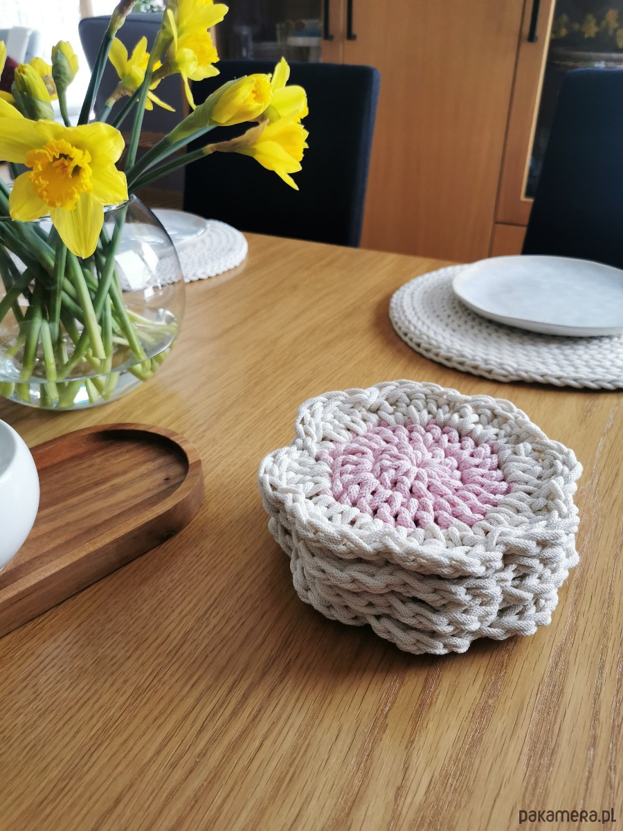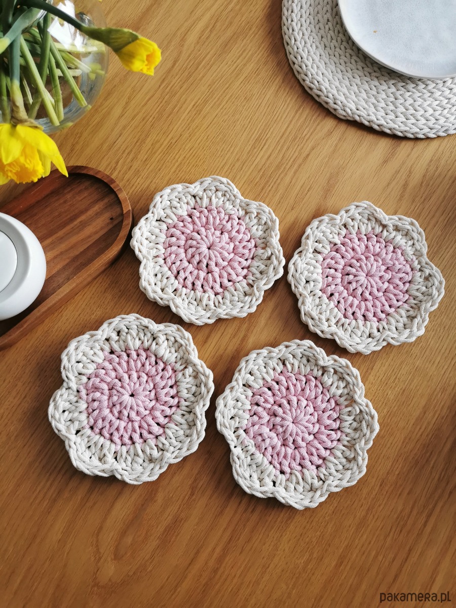 Wykonane w 100% z naturalnej bawełny, łączą w sobie funkcjonalność i estetykę. Delikatny, kwiatowy kształt sprawia, że każdy stół nabiera przytulnego, stylowego charakteru — niezależnie od tego, czy pijesz poranną kawę, jesz śniadanie z bliskimi czy organizujesz spotkanie przy stole.
