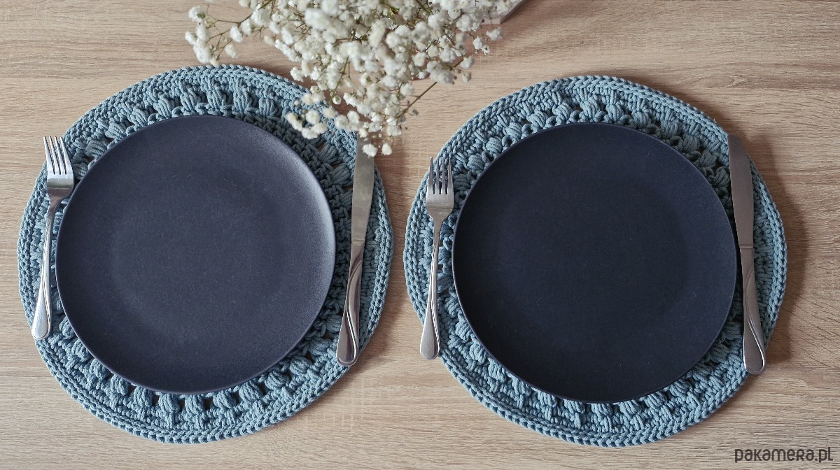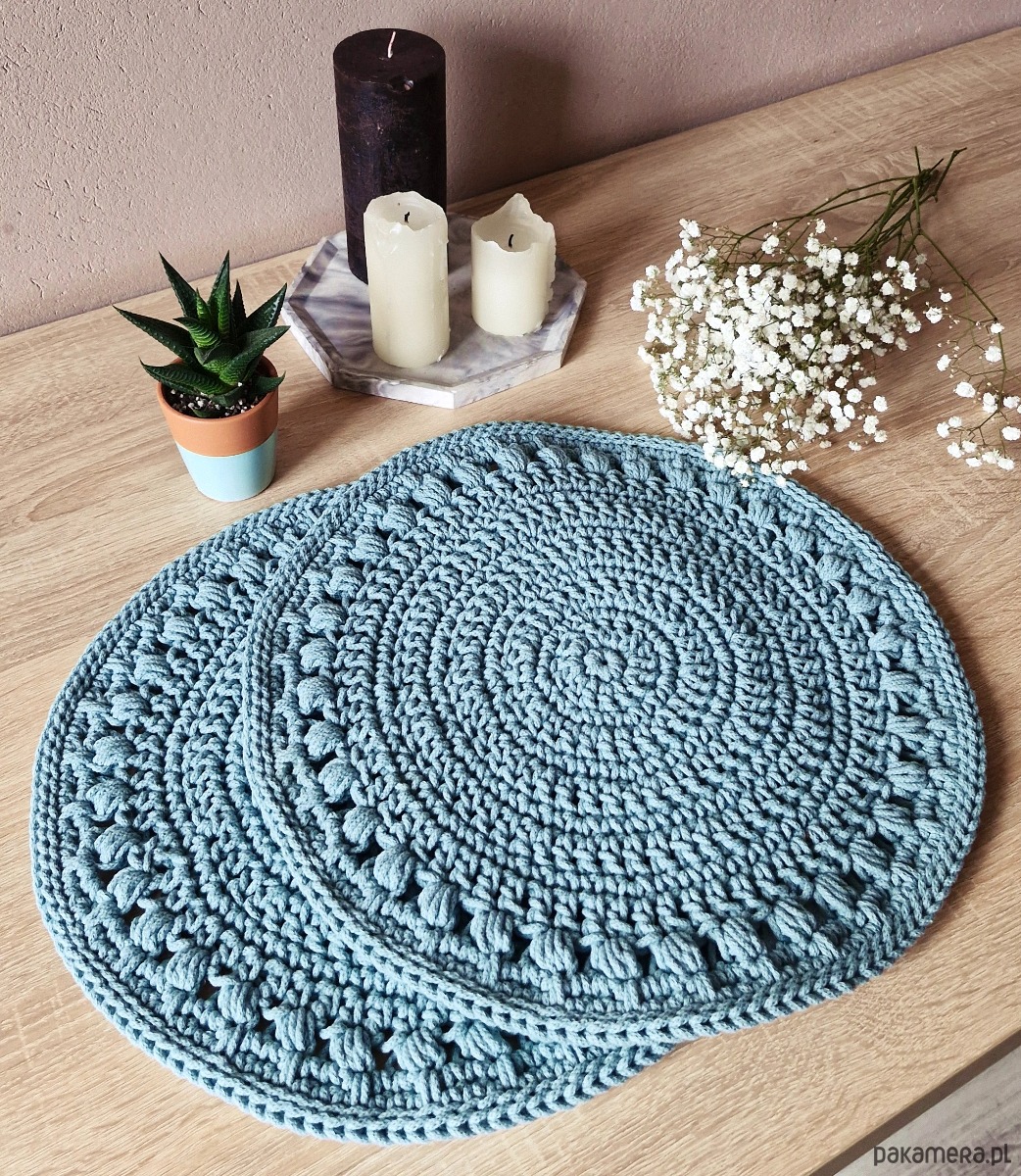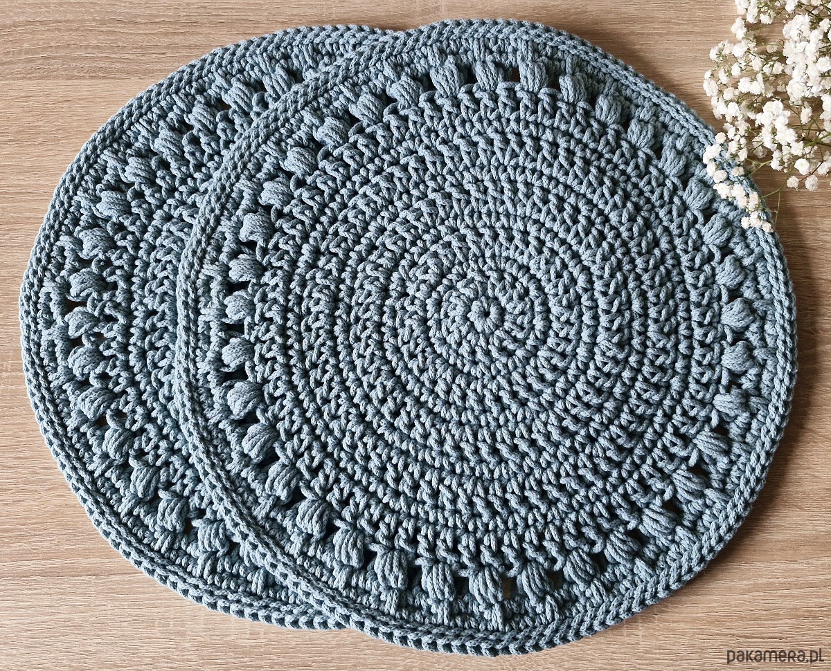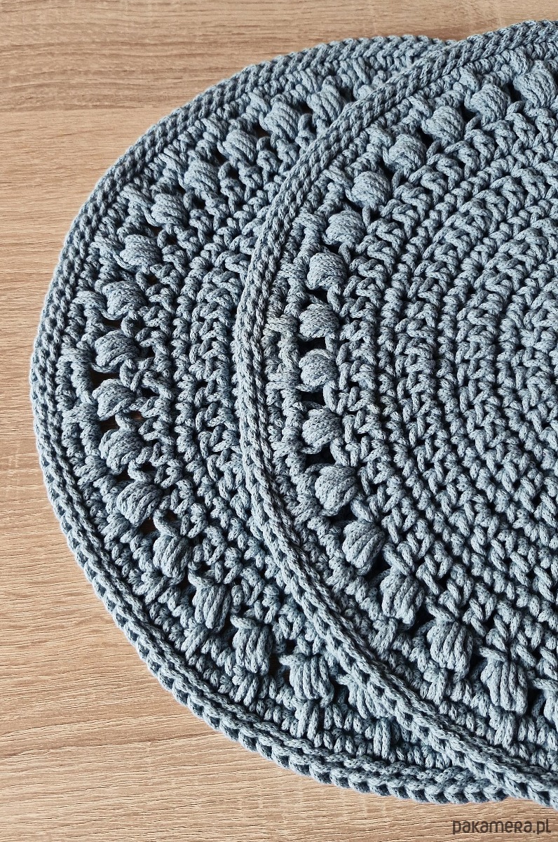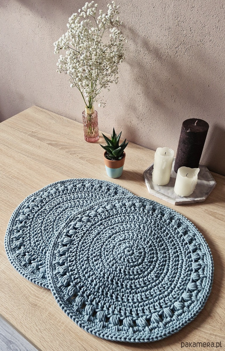 Wykonałam je na szydle ze sznurka bawełnianego 2,5 mm, przez co podkładki są subtelne, nie są przesadnie masywne i nieproporcjonalnie grube.