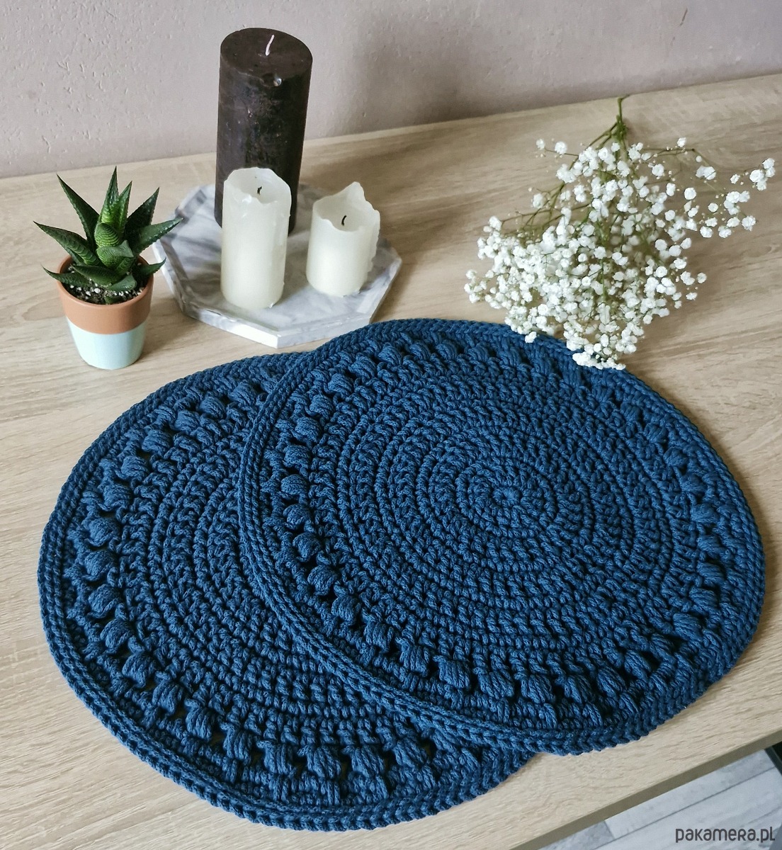 Wykonałam je na szydle ze sznurka bawełnianego 2,5 mm, przez co podkładki są subtelne, nie są przesadnie masywne i nieproporcjonalnie grube.