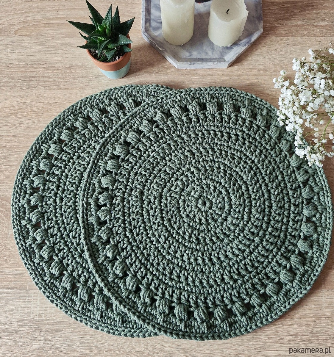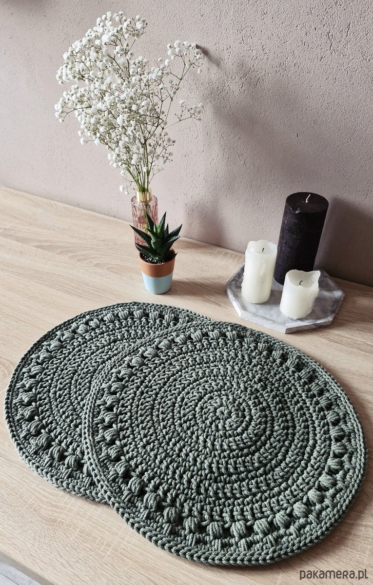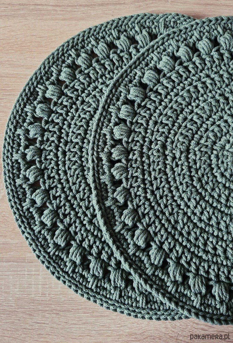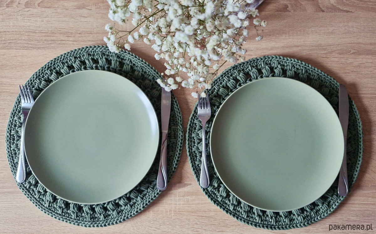 Wykonałam je na szydle ze sznurka bawełnianego 2,5 mm, przez co podkładki są subtelne, nie są przesadnie masywne i nieproporcjonalnie grube.