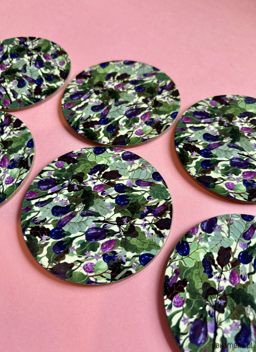 Podkładki pod kubek - Aubergine party- Bakłażany- Ilustracja