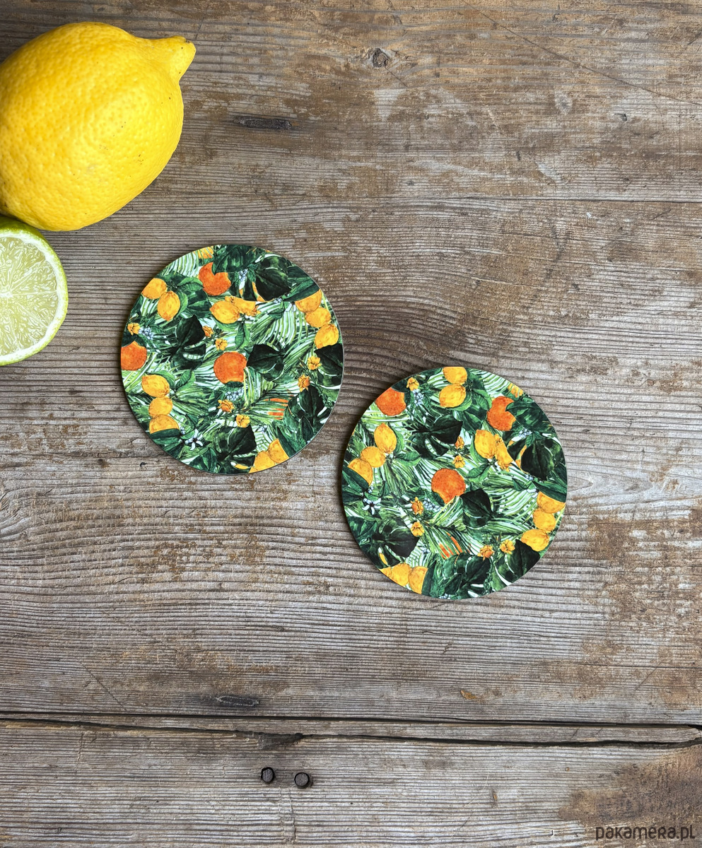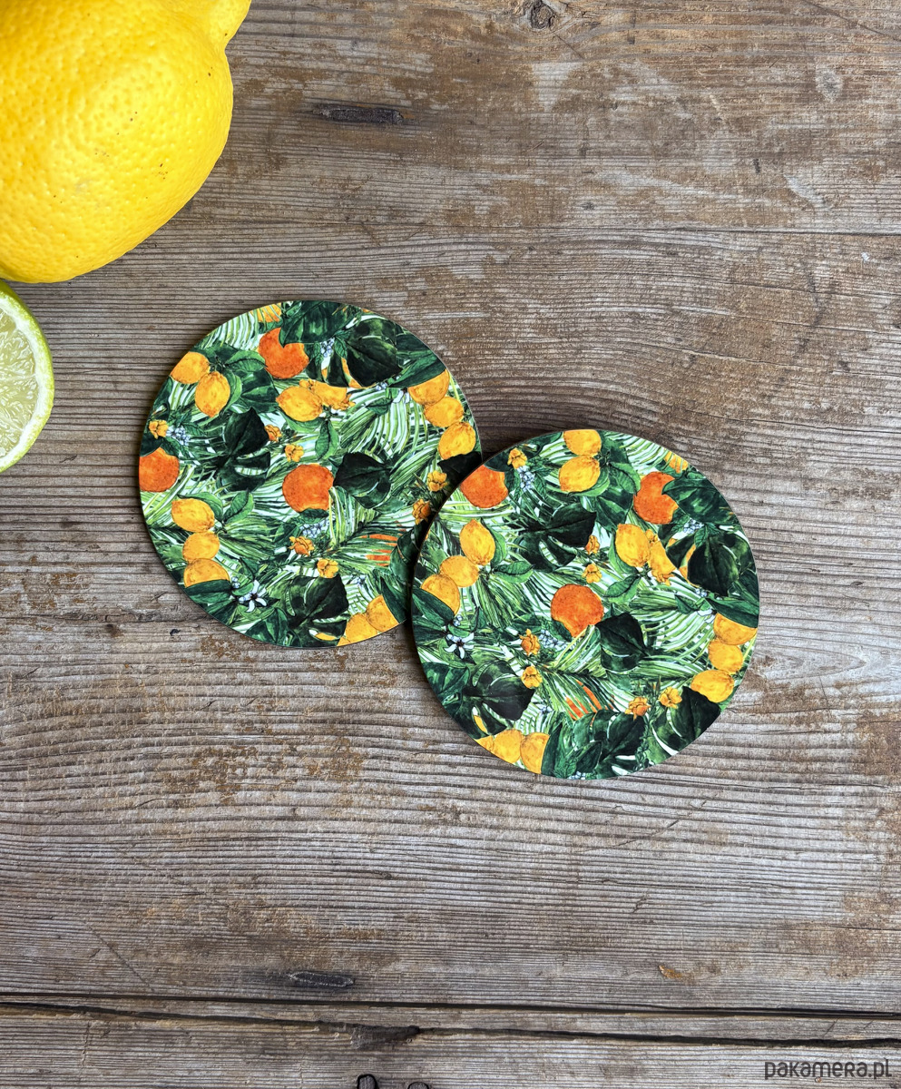 Podkładki pod kubek- Cytrusy- Owoce- Monstera- Ilustracja