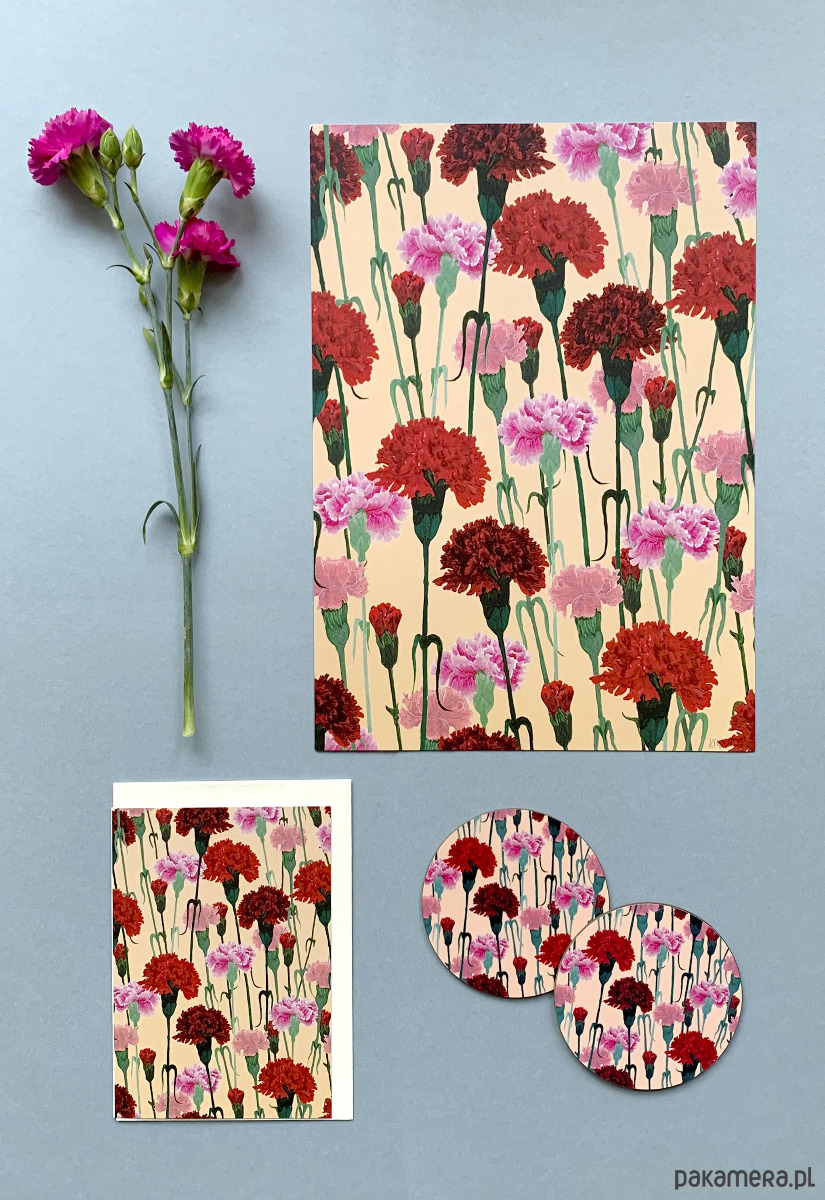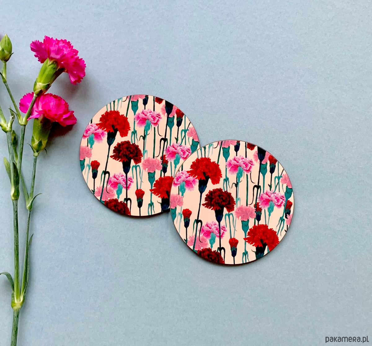 Podkładki pod kubek- Goździki- ilustracja- kwiaty