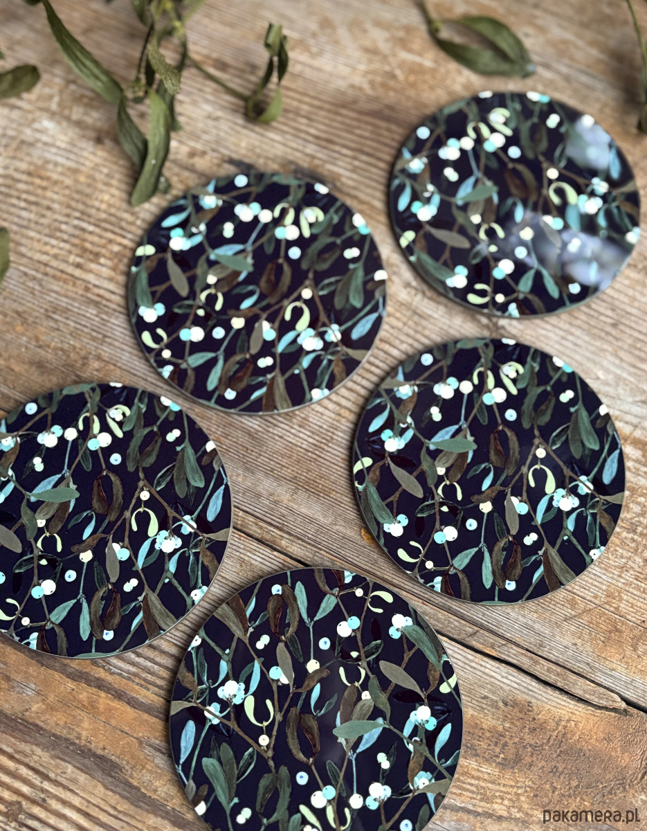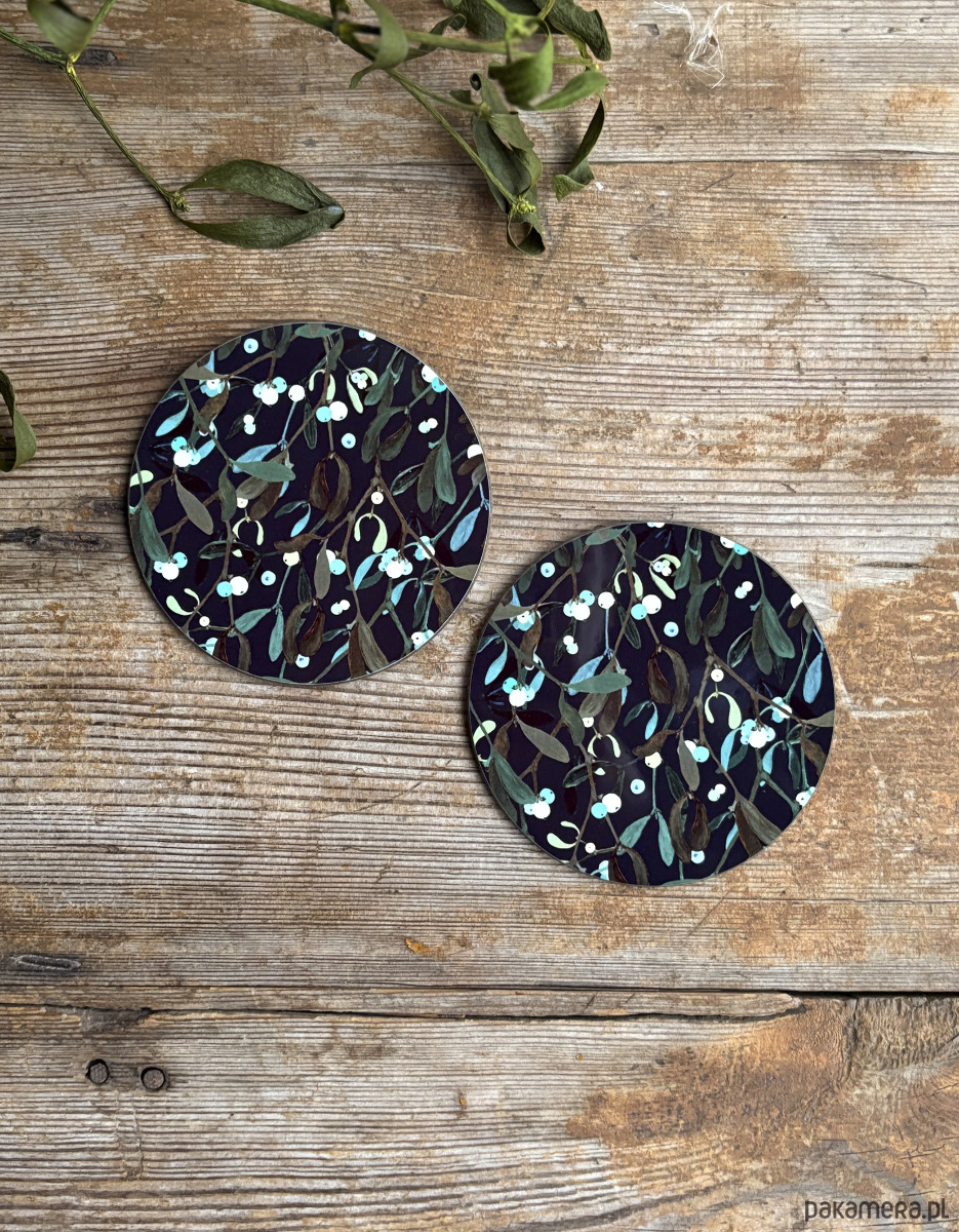 Podkładki pod kubek- Jemioła- Zimowe rośliny- Ilustracja