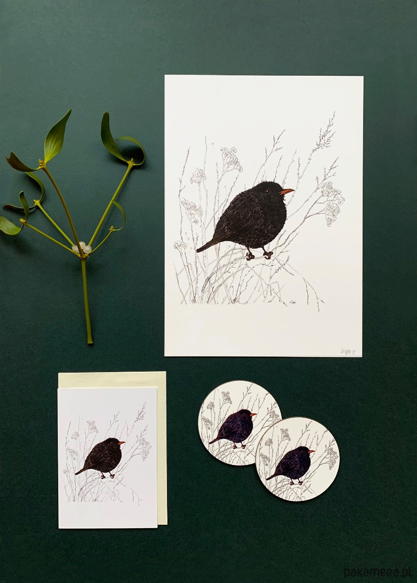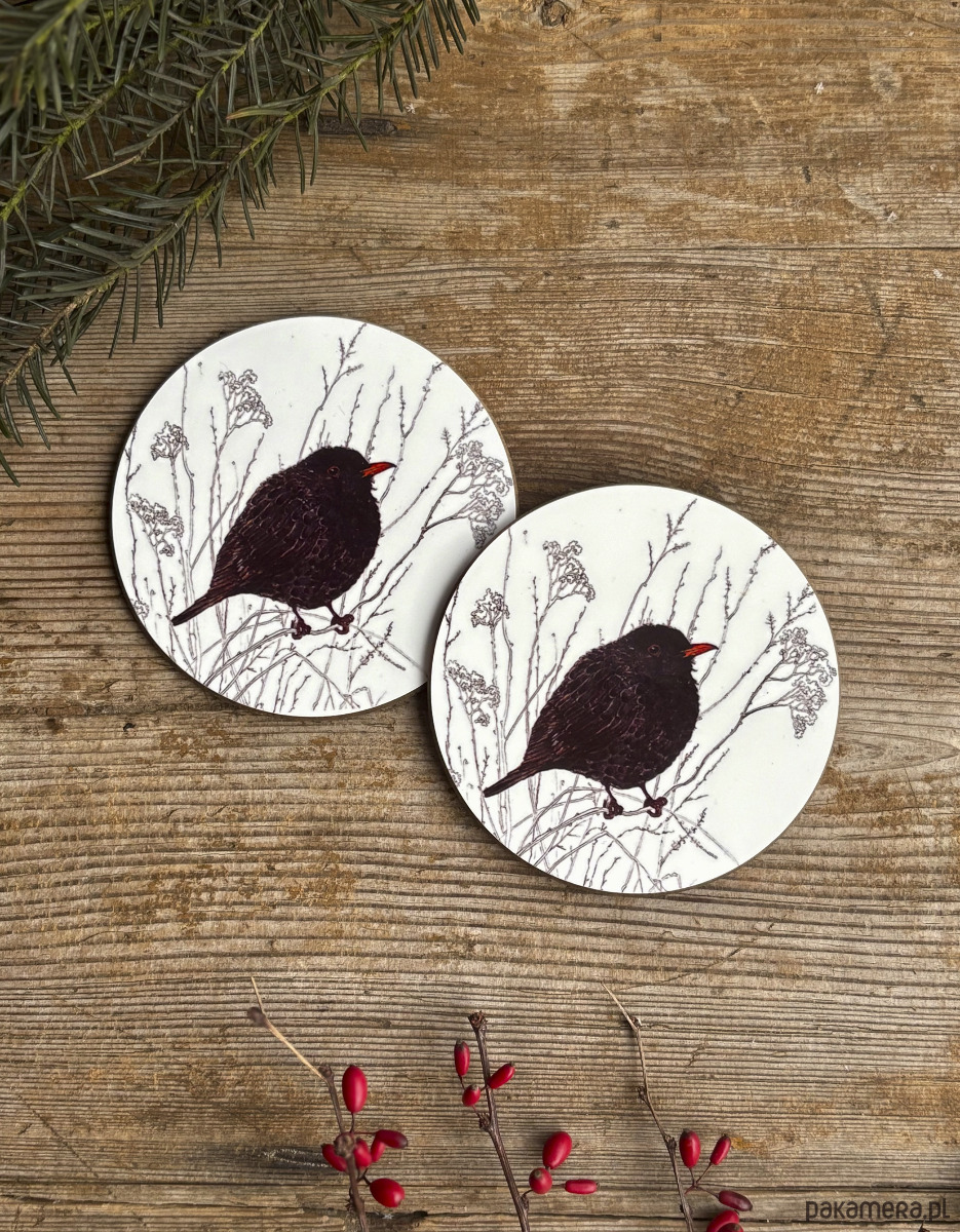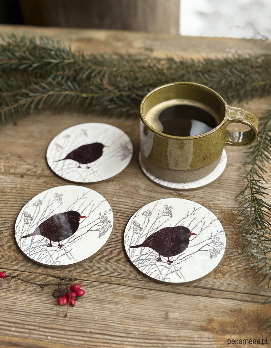 Podkładki pod kubek- Kos- Zimowy kos- Ilustracja