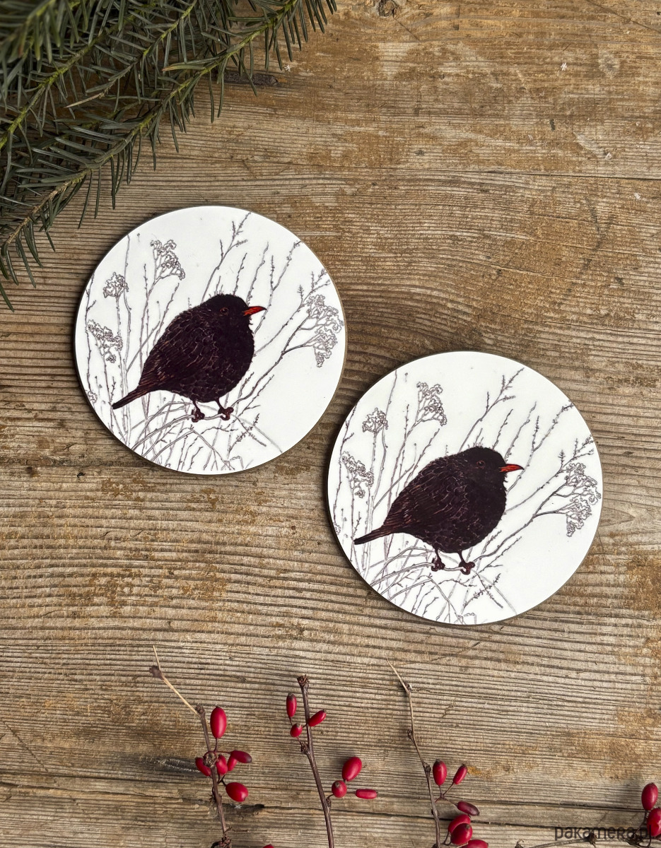 Podkładki pod kubek- Kos- Zimowy kos- Ilustracja