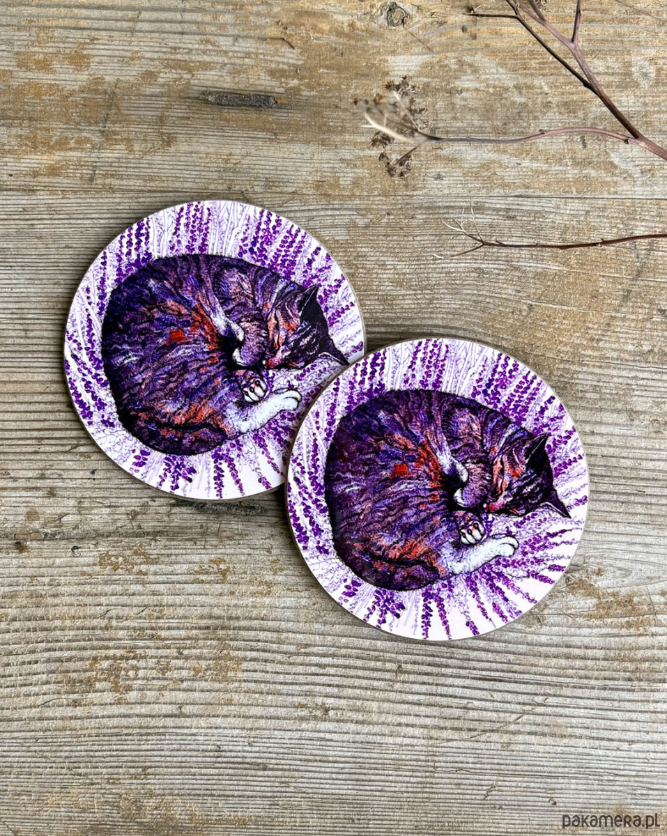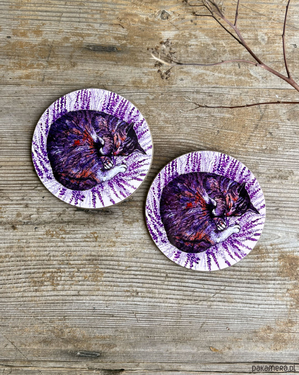 Podkładki pod kubek- Kot i wrzos- Ilustracja