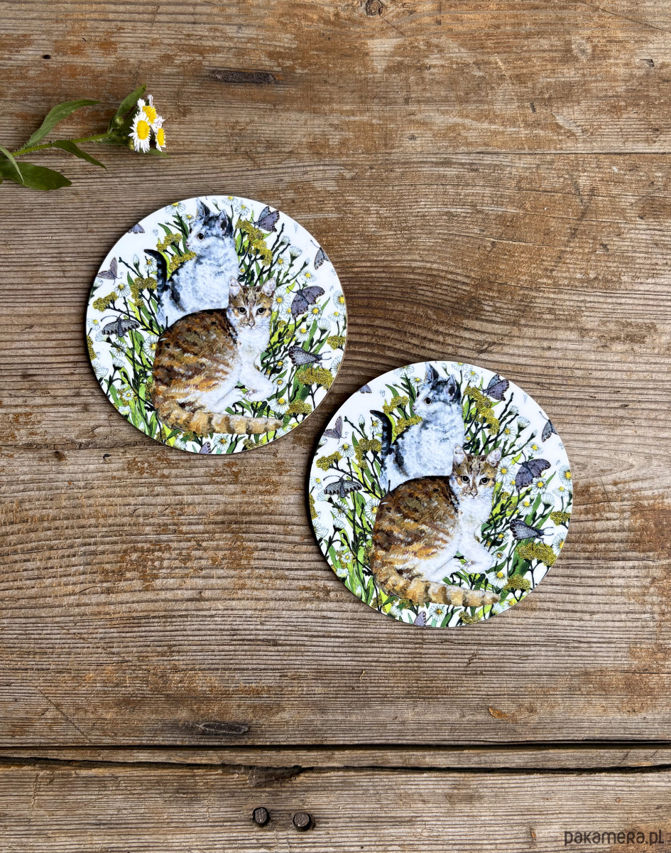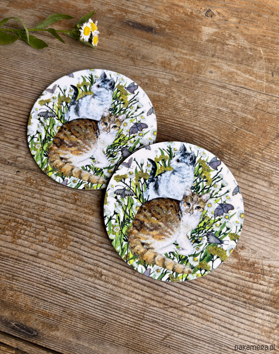 Podkładki pod kubek- Kotki dwa- Zwierzaki- ilustracja