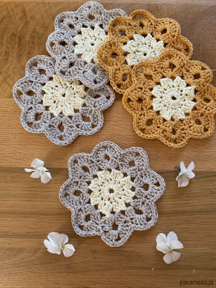 Wykonane na szydełku z miękkiej włóczki ochronią powierzchnię przed gorącem.