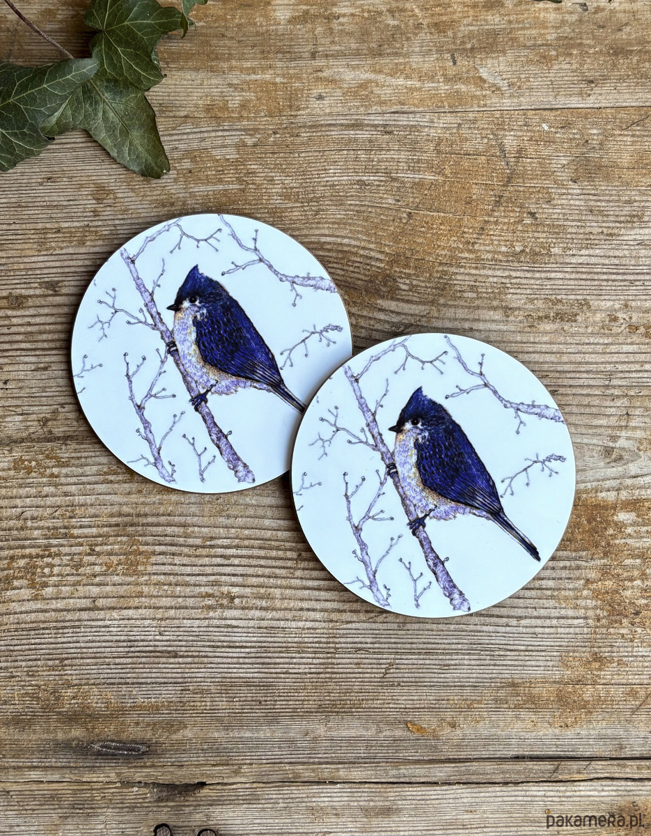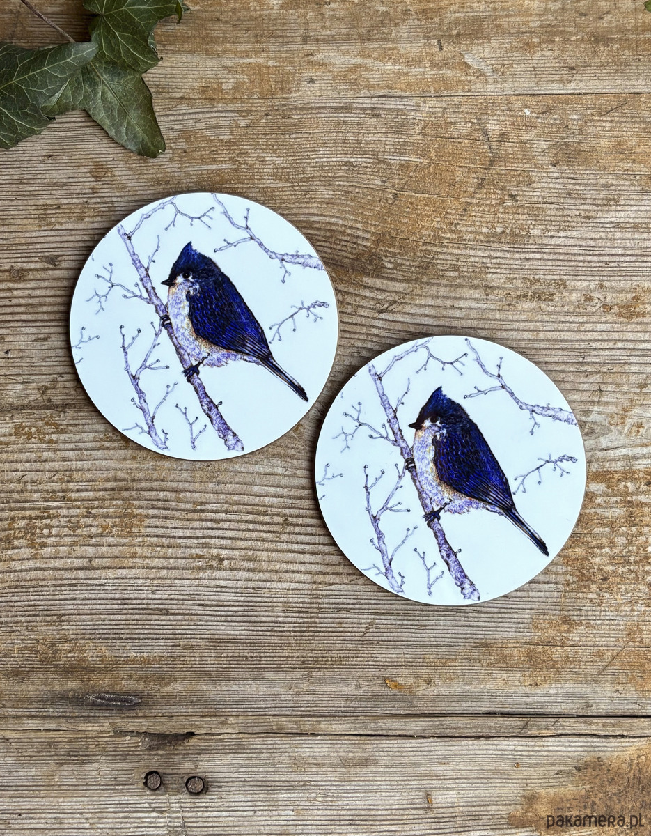 Podkładki pod kubek- Ptaszek w typie sikorki- Czubatka- Ptaki- Ilustracja