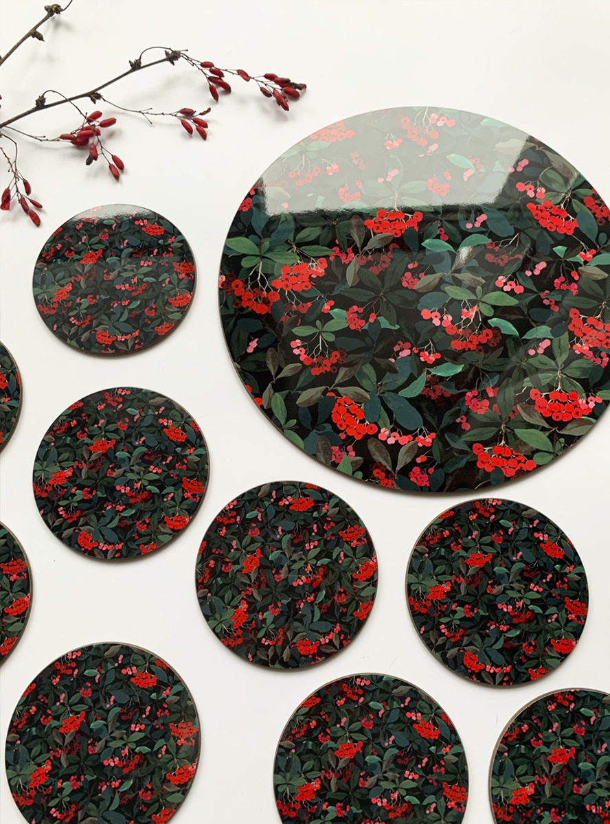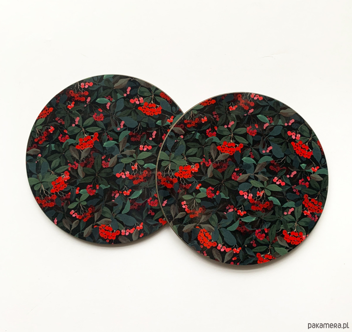 Podkładki pod kubek- Red berries- Zimowe krzewy- Ilustracja