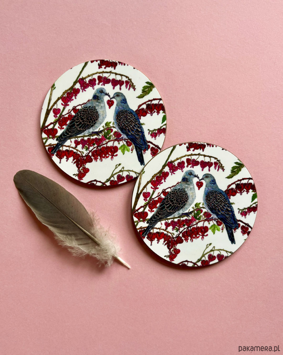 Podkładki pod kubek- Turkawki w serduszce- Ilustracja