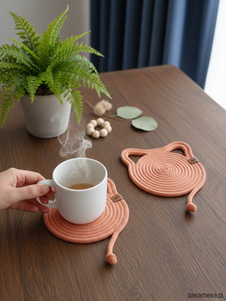 Poszukujesz uroczego i praktycznego dodatku na swój stół? Oto podkładki pod kubek ze sznurka bawełnianego z motywem kotów! Te słodkie podkładki są wykonane z bawełny z recyklingu, co sprawia, że są nie tylko estetyczne, ale także przyjazne dla środowiska.