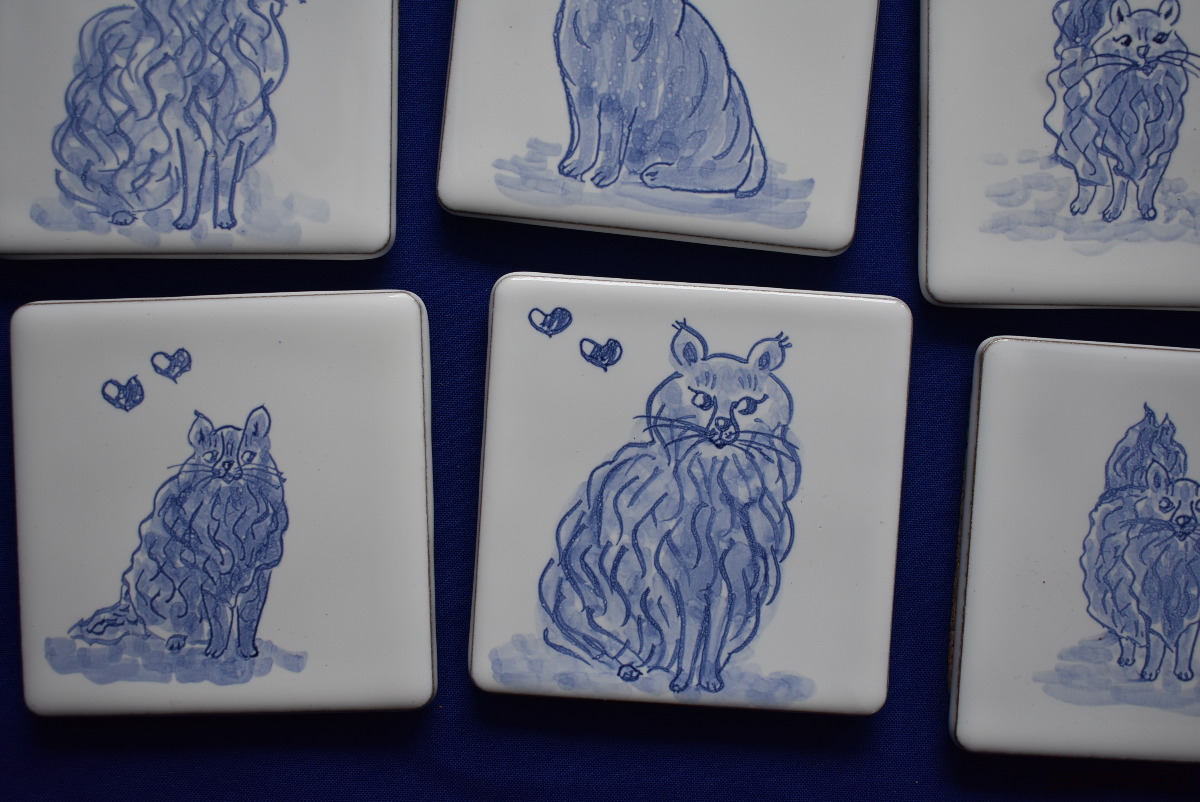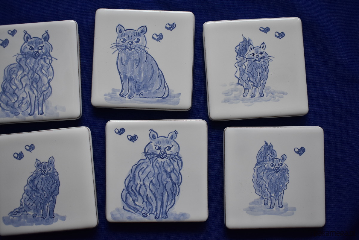 Podkładki pod kubki kafelki koty niebieskie