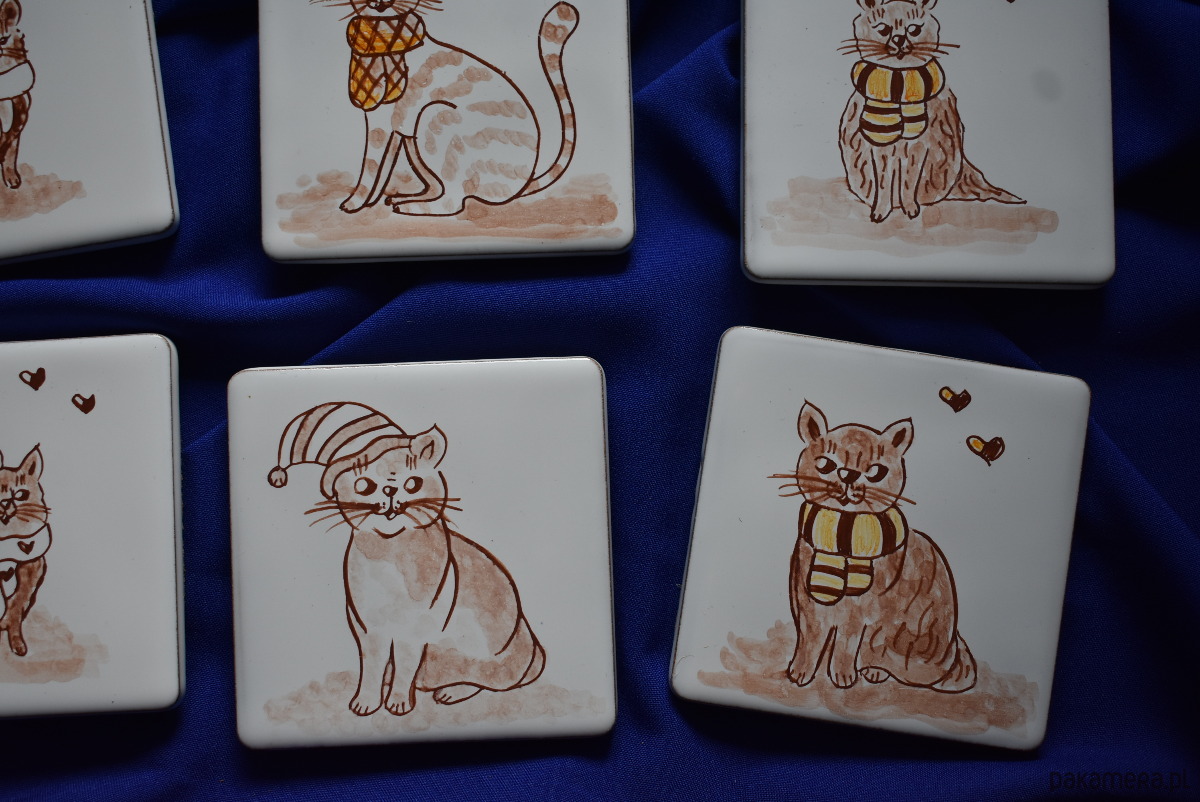 Każdy zestaw to unikatowe rękodzieło, w którym drobne różnice w odcieniach i detalach podkreślają jego artystyczny charakter. To doskonały prezent dla miłośników kotów, ceramiki i stylu vintage, a także piękny, praktyczny element wystroju wnętrza.