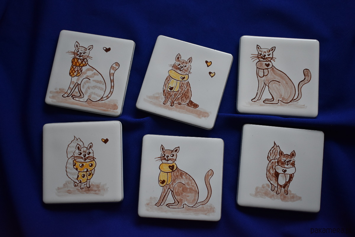 Każdy zestaw to unikatowe rękodzieło, w którym drobne różnice w odcieniach i detalach podkreślają jego artystyczny charakter. To doskonały prezent dla miłośników kotów, ceramiki i stylu vintage, a także piękny, praktyczny element wystroju wnętrza.