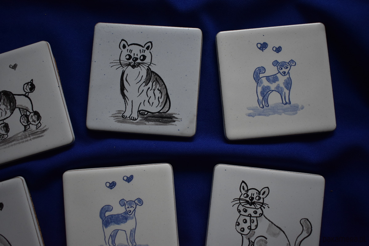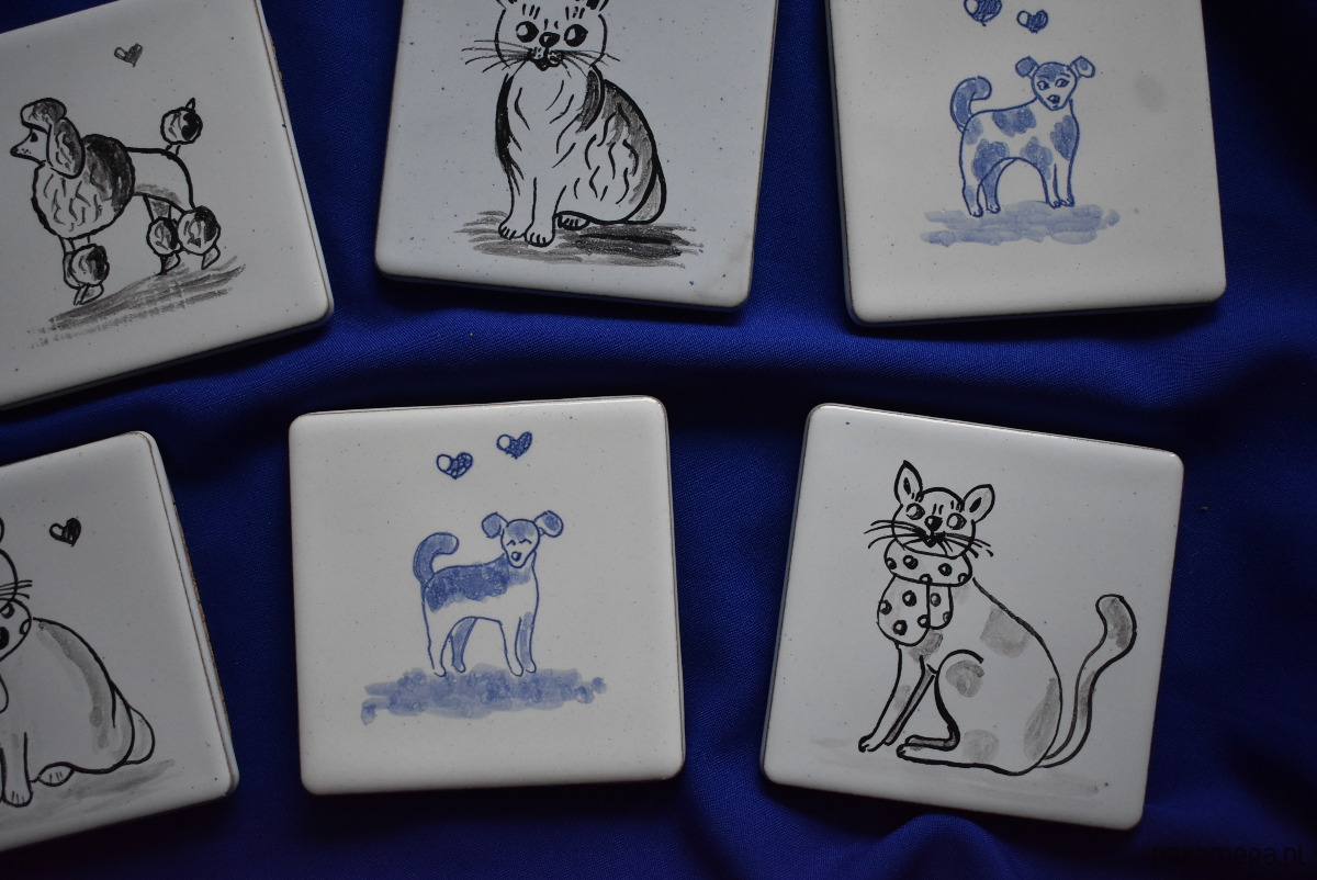 Podkładki pod kubki kafelki psy koty kobaltowe