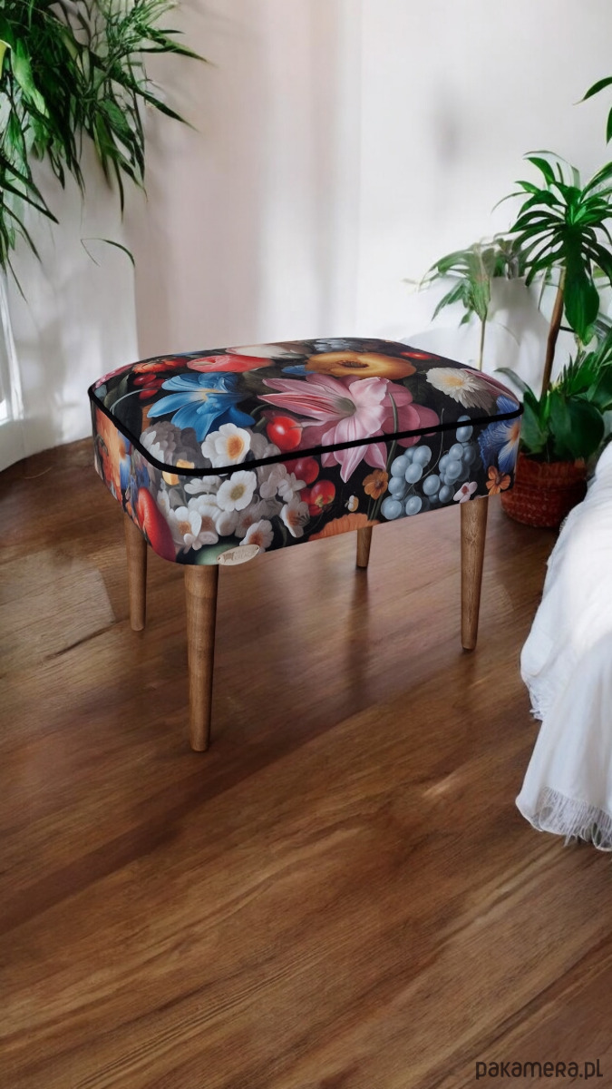 Obicie inspirowane klasycznymi malarskimi kompozycjami florystycznymi wniesie elegancję i przytulność do każdego pomieszczenia. Intensywne kolory i subtelne detale sprawiają, że ławeczka staje się prawdziwym dziełem sztuki, idealnym do sypialni, salonu lub przedpokoju.