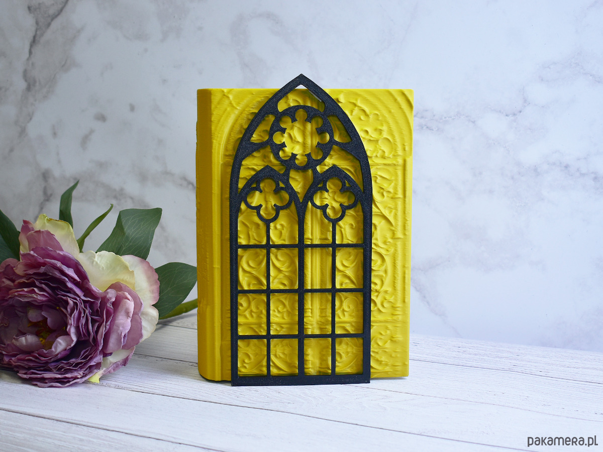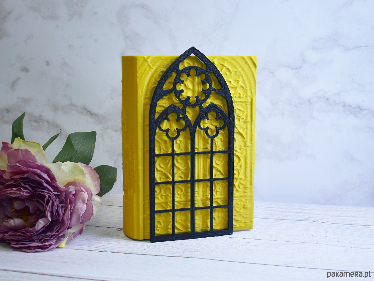 Podpórki do książek w kształcie gotyckich okien, wydrukowane z biodegradowalnego PLA. Projekt inspirowany gotycką architekturą będzie dobrze pasował na półkach z książkami, albumami lub innymi przedmiotami. PLA to ekologiczny materiał, co czyni te podpórki dobrym wyborem dla osób dbających o środowisko.