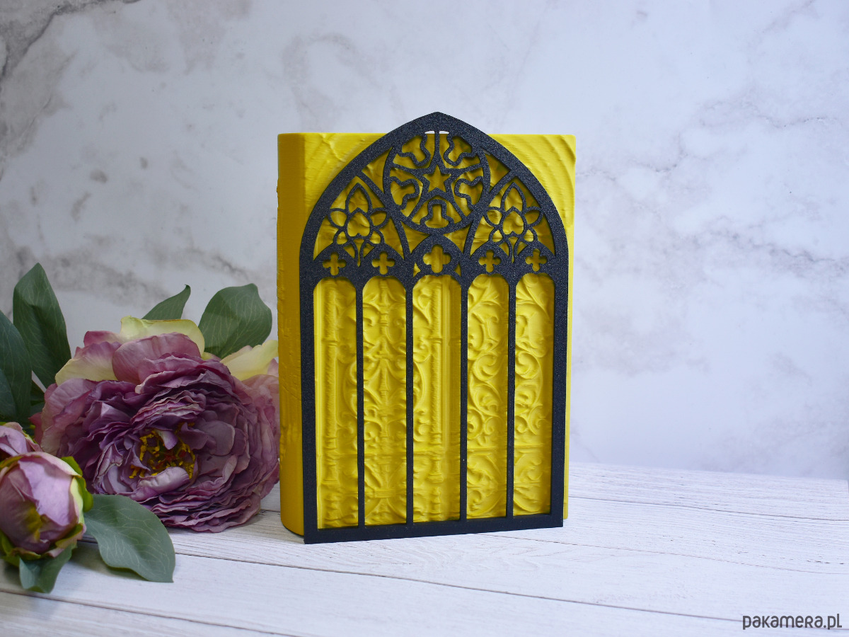 Podpórki do książek w kształcie gotyckich okien, wydrukowane z biodegradowalnego PLA. Projekt inspirowany gotycką architekturą będzie dobrze pasował na półkach z książkami, albumami lub innymi przedmiotami. PLA to ekologiczny materiał, co czyni te podpórki dobrym wyborem dla osób dbających o środowisko.