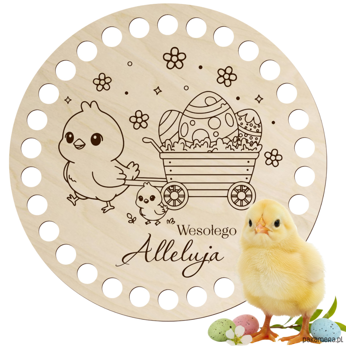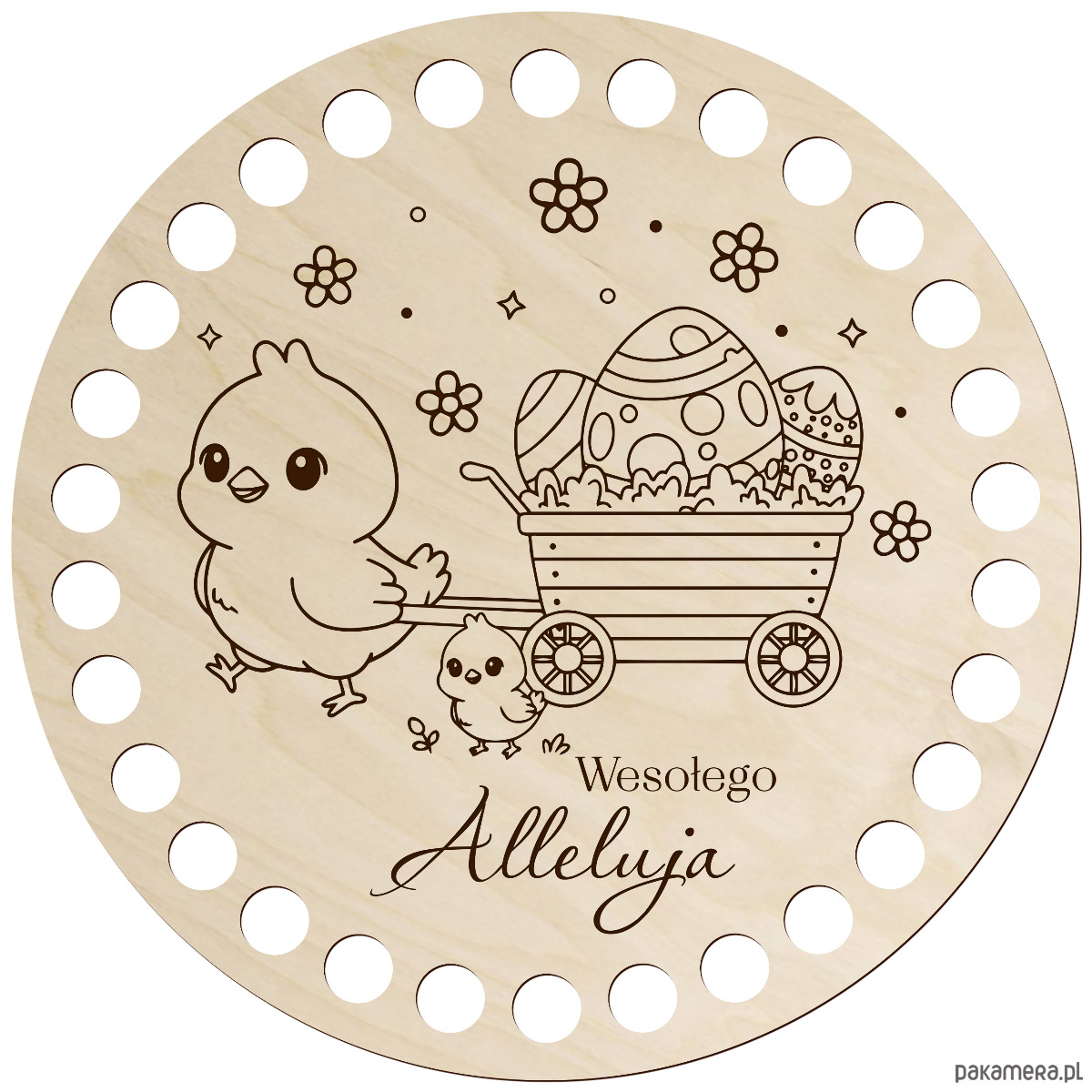 Drewniana baza do szydełkowania z wielkanocnym grawerem to wyjątkowy dodatek do rękodzieła, który pozwoli stworzyć niepowtarzalne dekoracje świąteczne. Wykonana z naturalnej sklejki brzozowej zachwyca estetyką, precyzją wykonania i świątecznym charakterem.