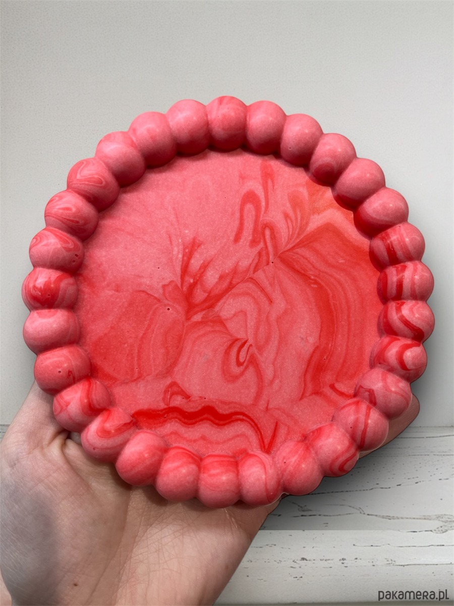 Podstawka czerwona bąbelkowa na biżuterię świecę dekoracja