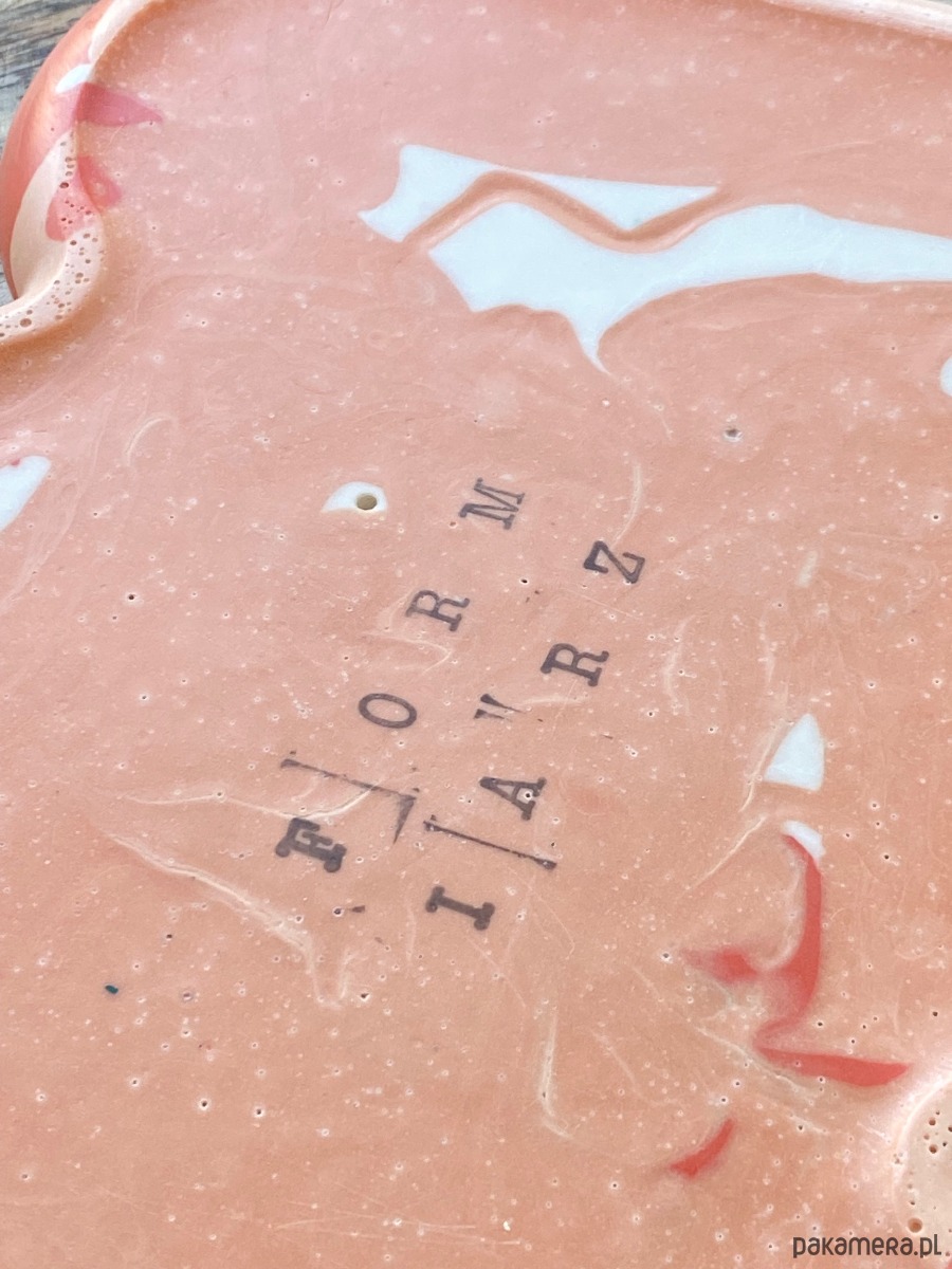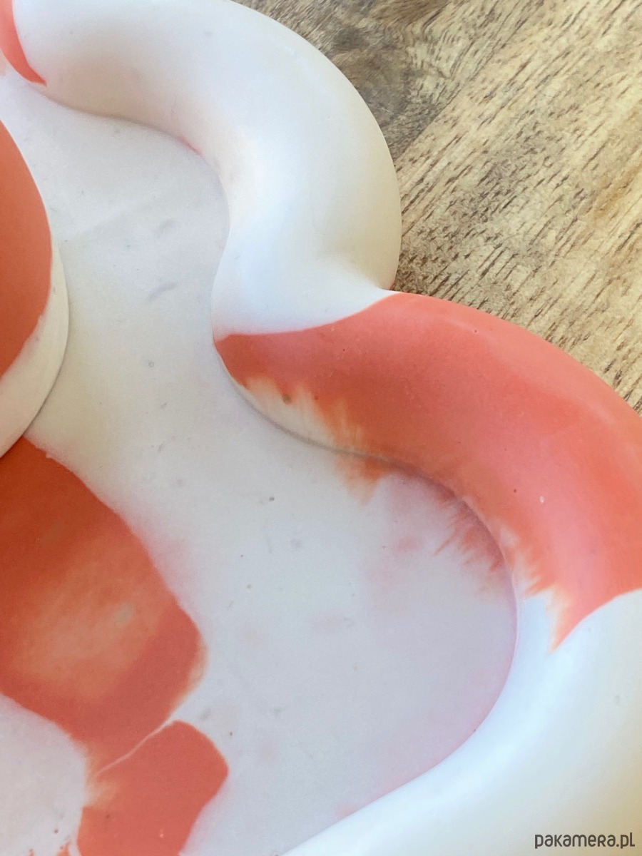 Falista podstawka w 3 kolorach z gipsu polimerowego, błyszczące wykończenie woskiem.