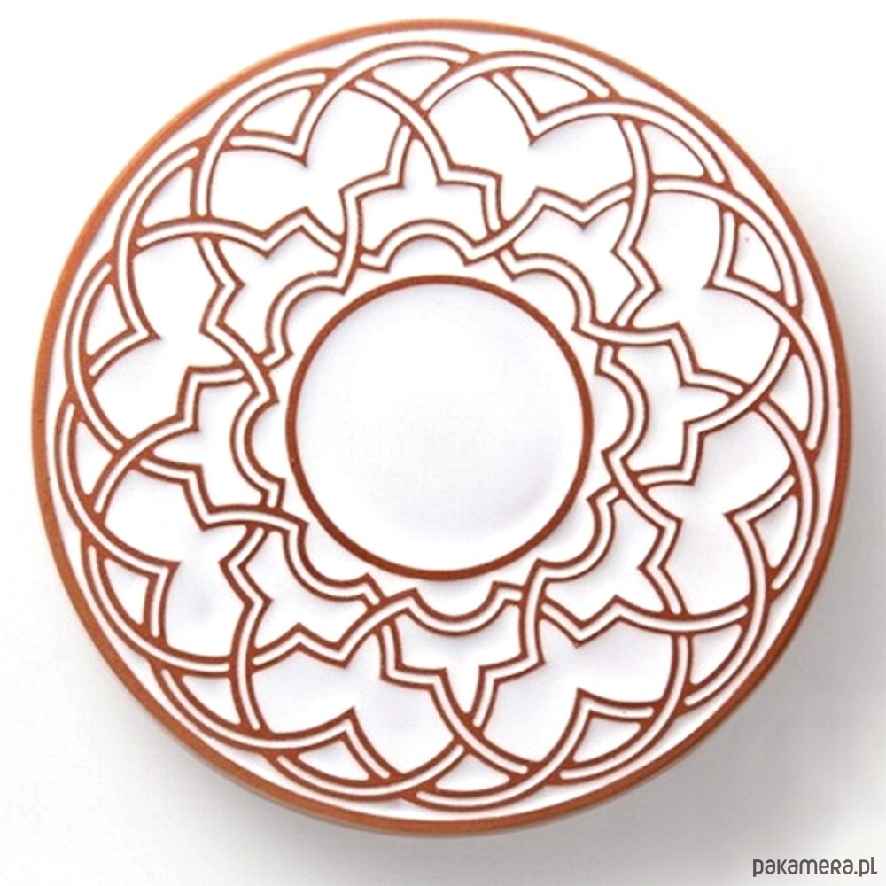 Kolor podstawki biały, ornament brązowy.
