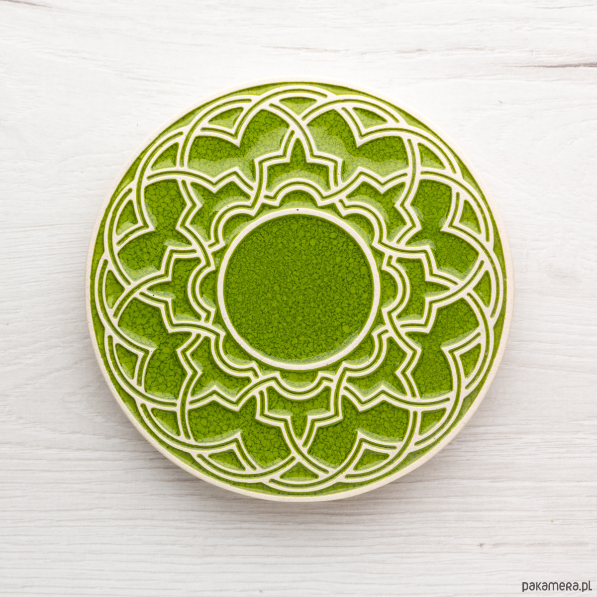Ceramiczna podstawka geometryczna jasnozielona.