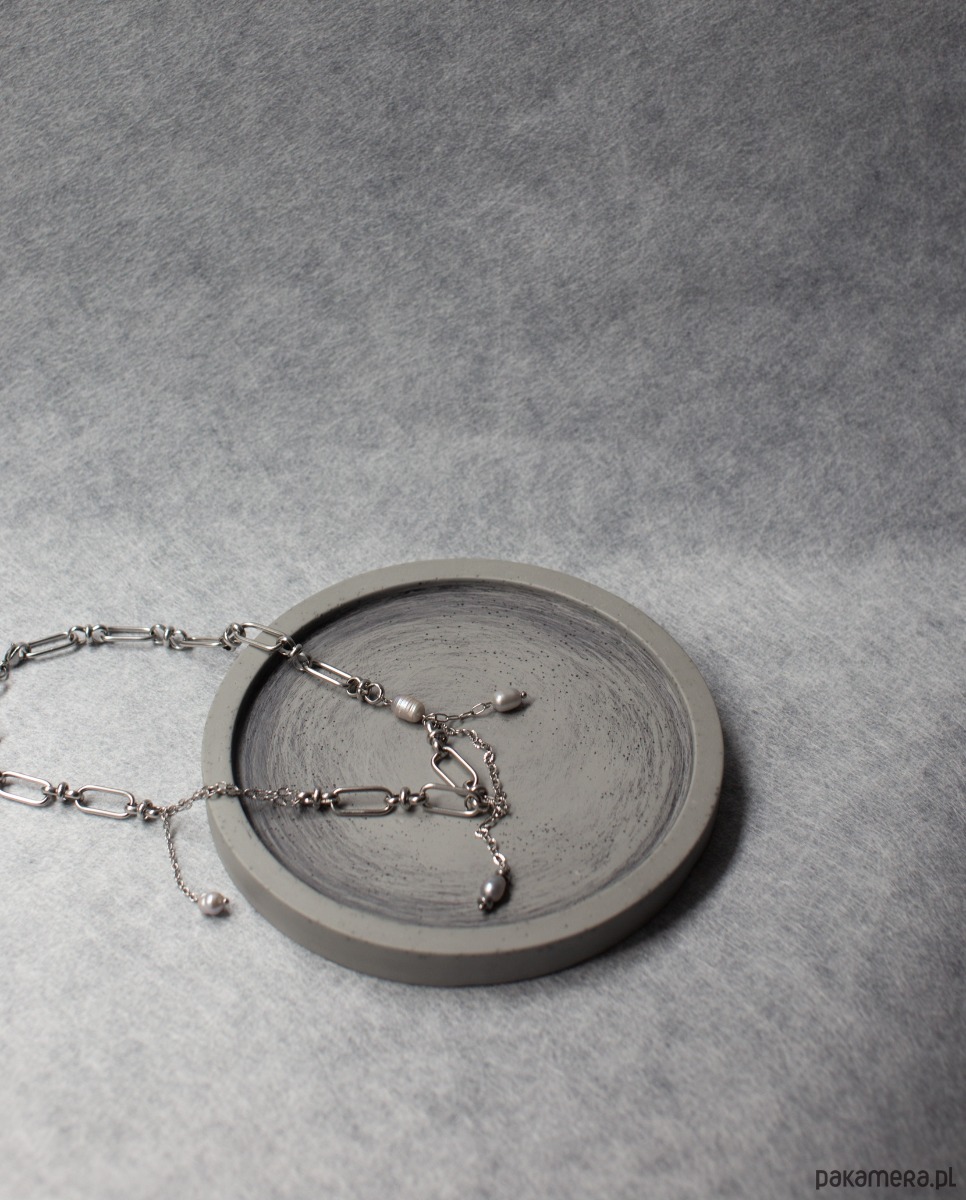 Podstawka wykonana jest z gipsu polimerowego z efektem postarzenia. Delikatna tekstura i lakoniczny kształt podkreślają naturalne piękno materiału. Idealny do świec, biżuterii lub jako samodzielny akcent we wnętrzu. Zaprojektowany, aby wprowadzić spokój i harmonię do przestrzeni.