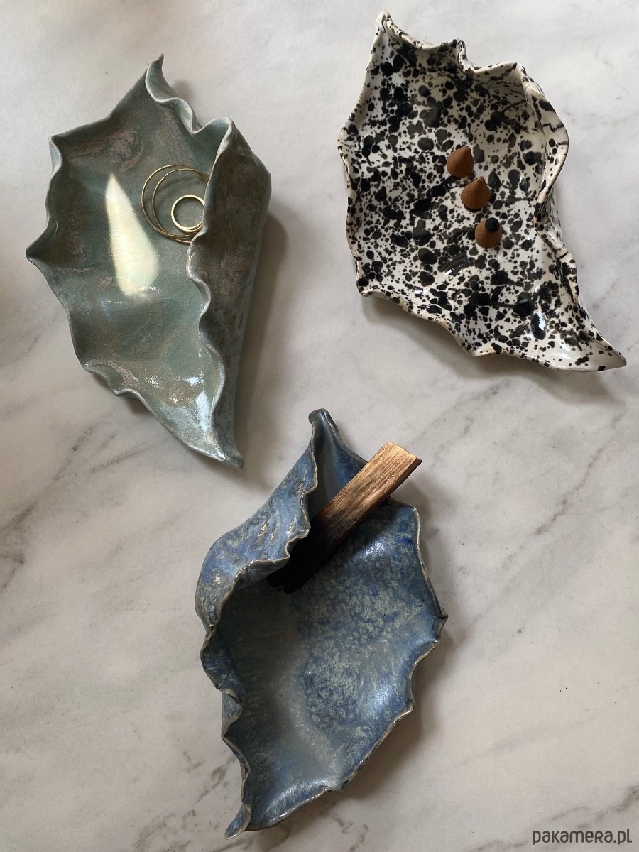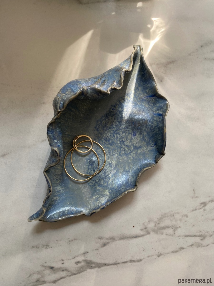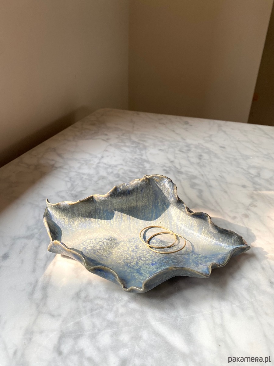 Gliniany talerzyk w kształcie muszelki. Idealny na biżuterię, palo santo lub po prostu ukochane drobiazgi. To kamionka, więc idealnie sprawdzi się również w łazience.