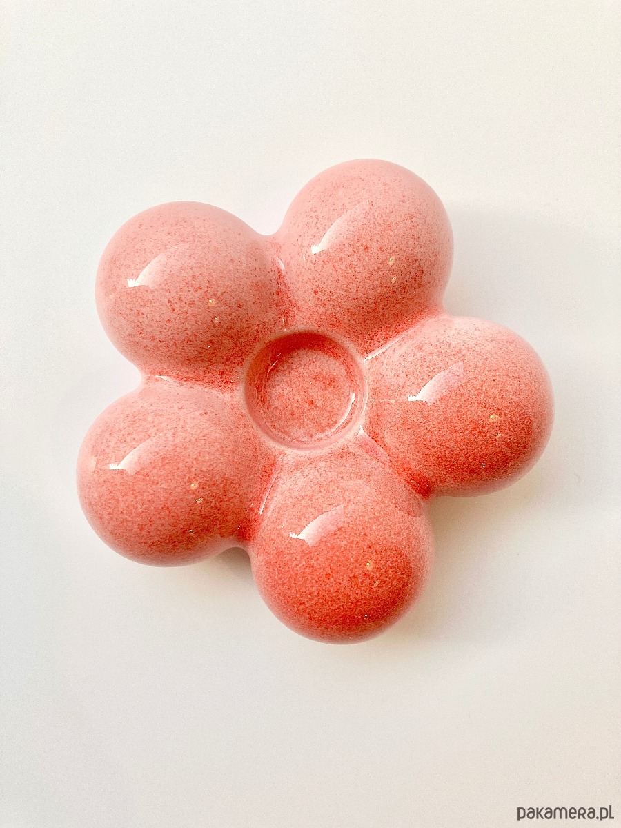 Wprowadź odrobinę koloru i harmonii do swojego wnętrza dzięki tej uroczej podstawce na kadzidełka stożkowe w kształcie kwiatka. Ręcznie wykonana z ceramiki i pokryta błyszczącym szkliwem w odcieniach różu i czerwieni, stanowi nie tylko praktyczny element rytuałów aromaterapii, ale także dekoracyjny akcent, który ożywi każdą przestrzeń.