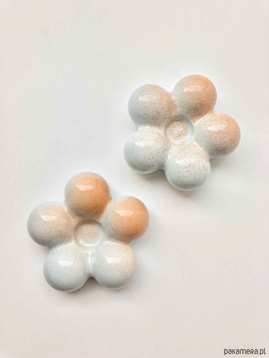 Wprowadź odrobinę harmonii do swojego wnętrza dzięki tej uroczej podstawce na kadzidełka stożkowe w kształcie kwiatka. Każda sztuka została wykonana i szkliwiona ręcznie, dlatego jest absolutnie wyjątkowa. Delikatne połączenie błękitu i ciepłego pomarańczu nadaje jej subtelny, pastelowy charakter, który pięknie wpisze się w każde wnętrze – od minimalistycznego po boho.