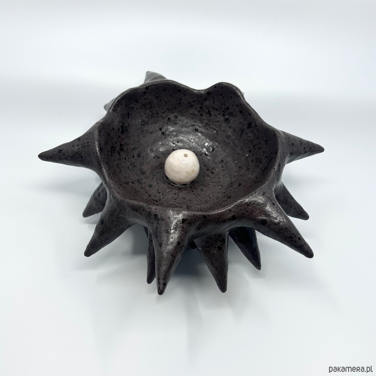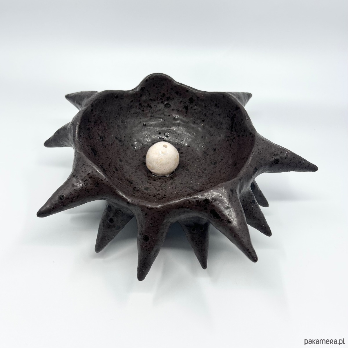 Posiada ręcznie formowane kolce i mały, centralny otwór, który bezpiecznie trzyma kadzidełko.