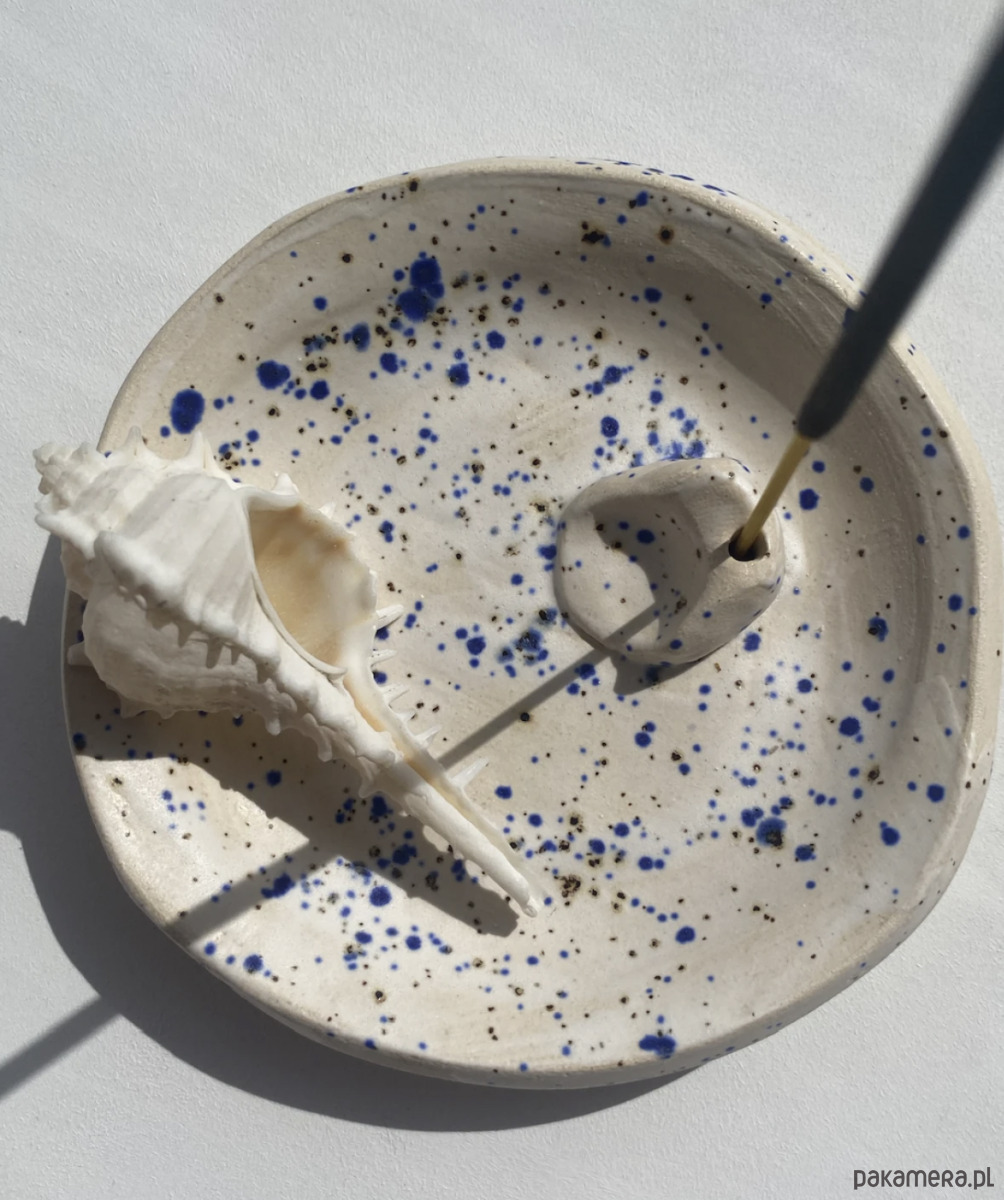 Ceramiczna podstaweczka na kadzidełko. Szkliwiona wewnętrznie.