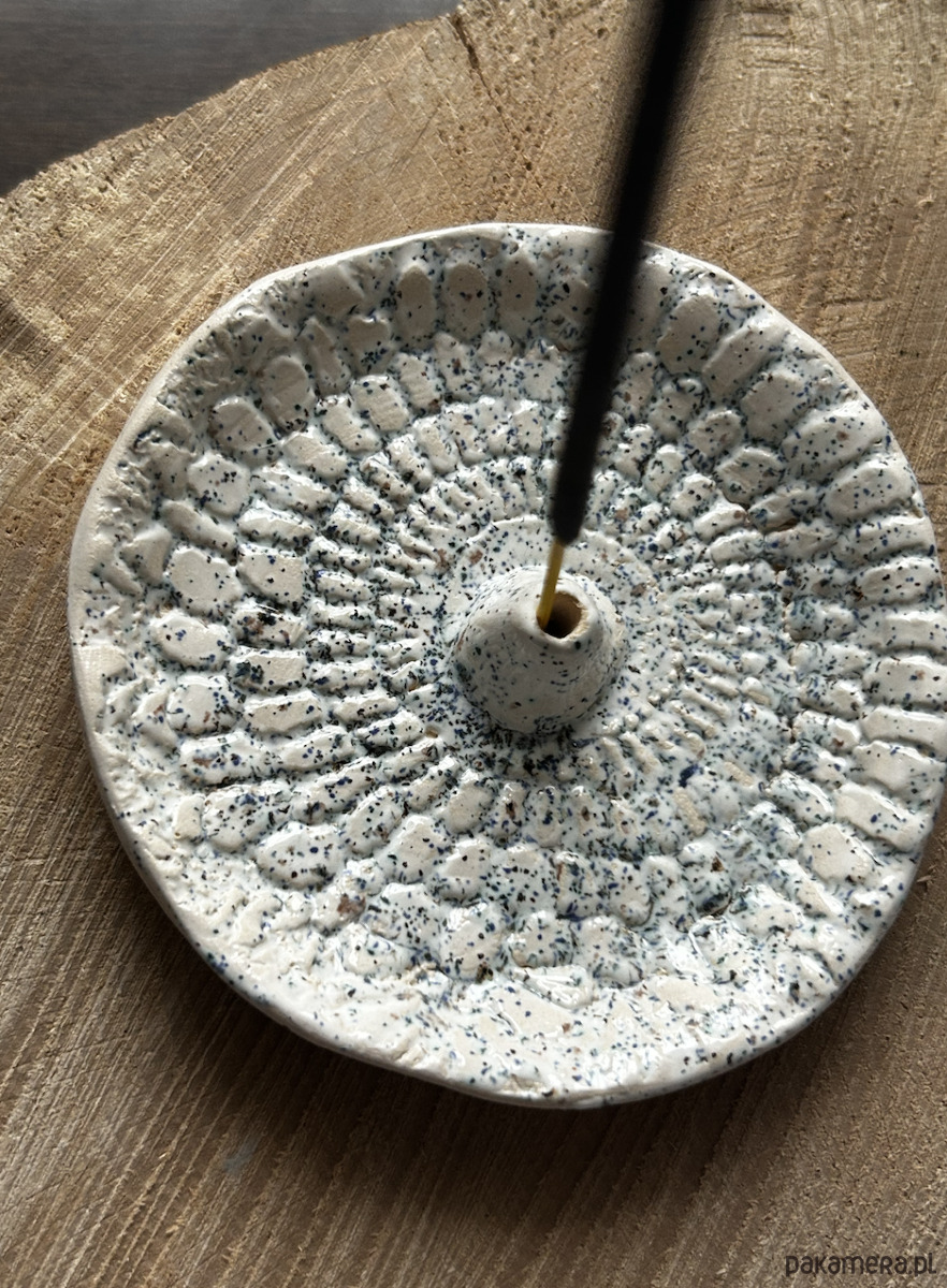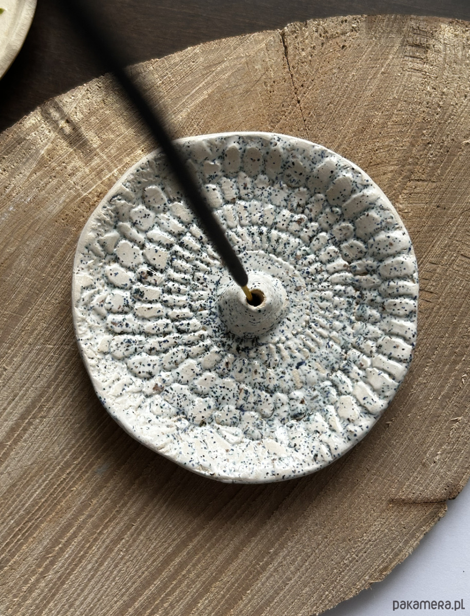 Ceramiczna podstaweczka na kadzidełko. Szkliwiona wewnętrznie.