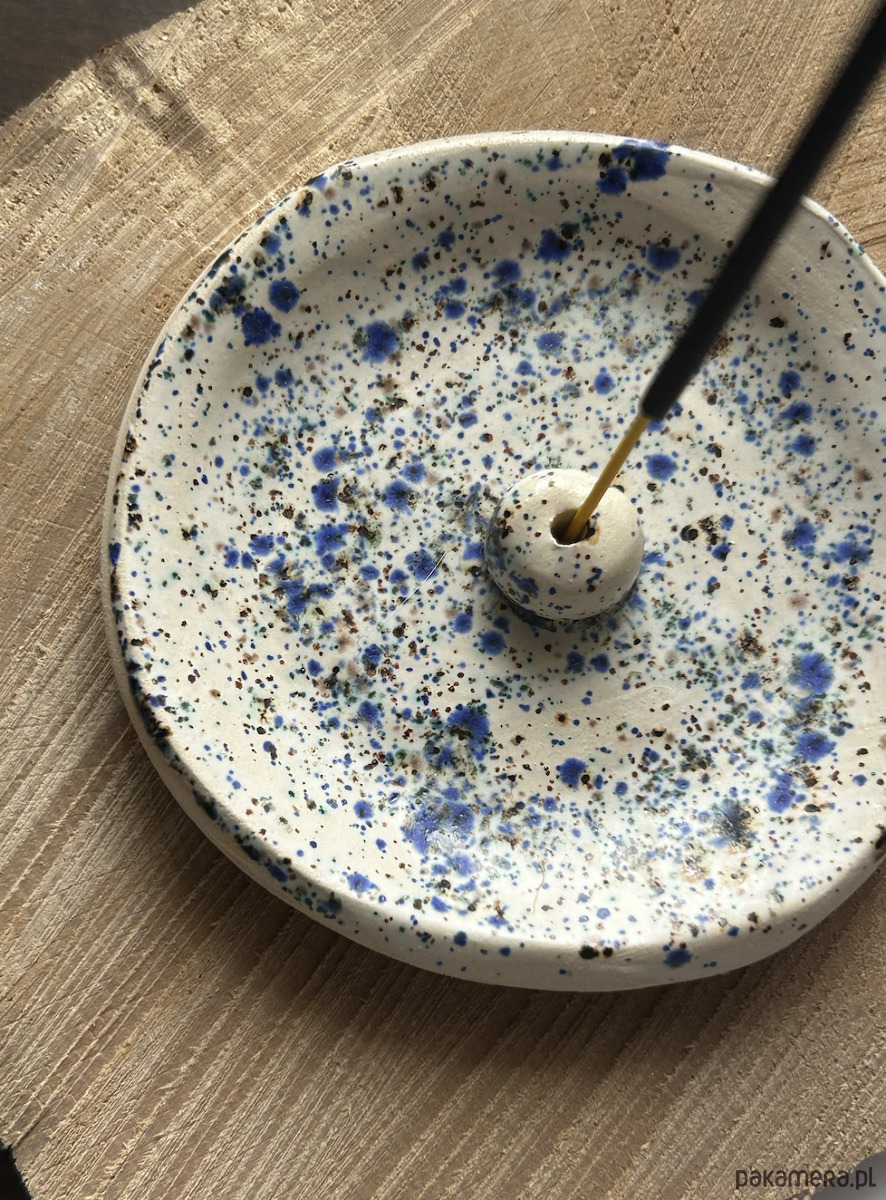 Ceramiczna podstaweczka na kadzidełko. Szkliwiona wewnętrznie.