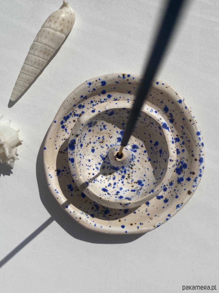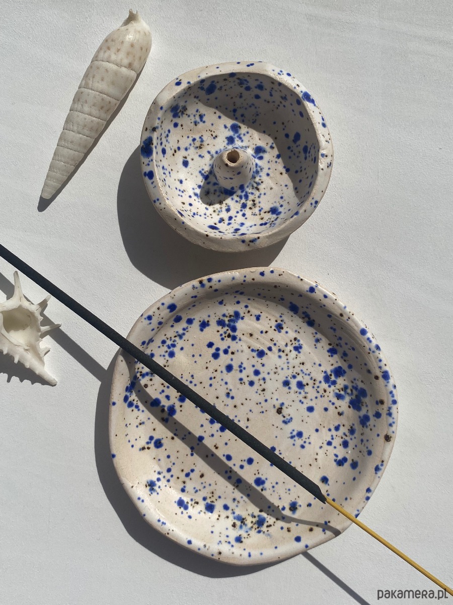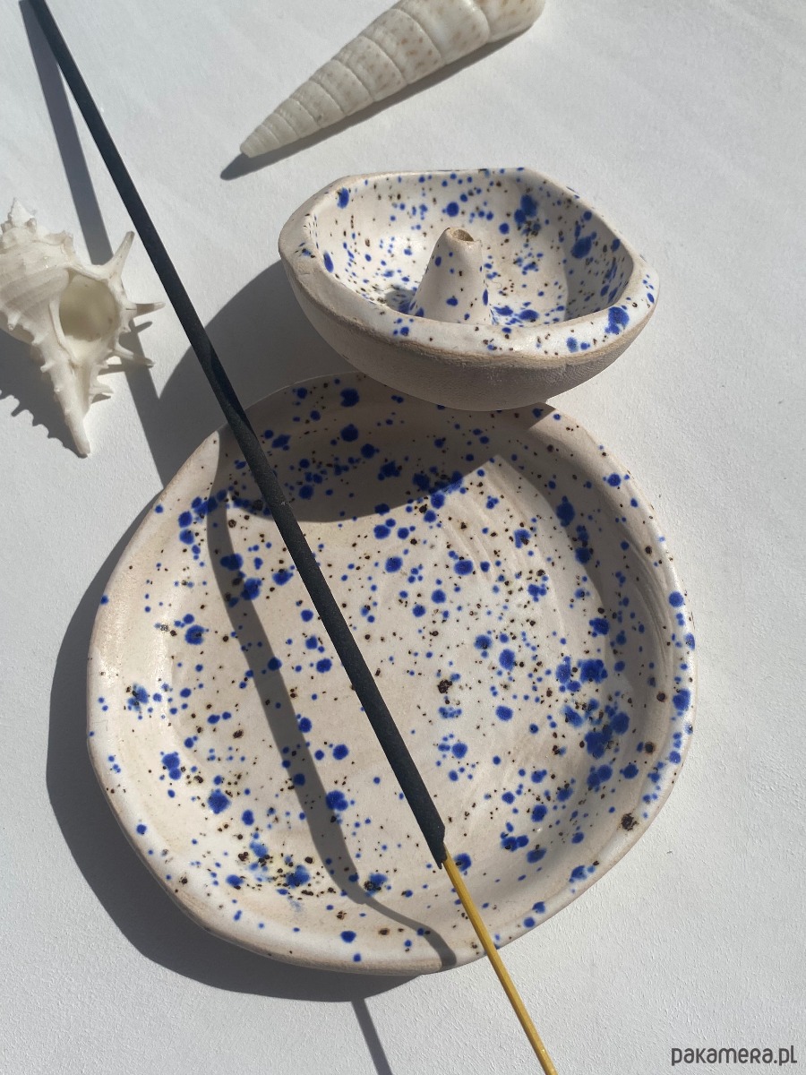 Palolopuli rękodzieło . Ceramiczna postaweczka na kadzidełko wraz z talerzykiem na skarby.