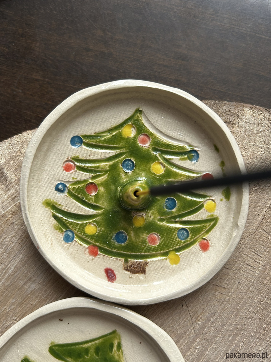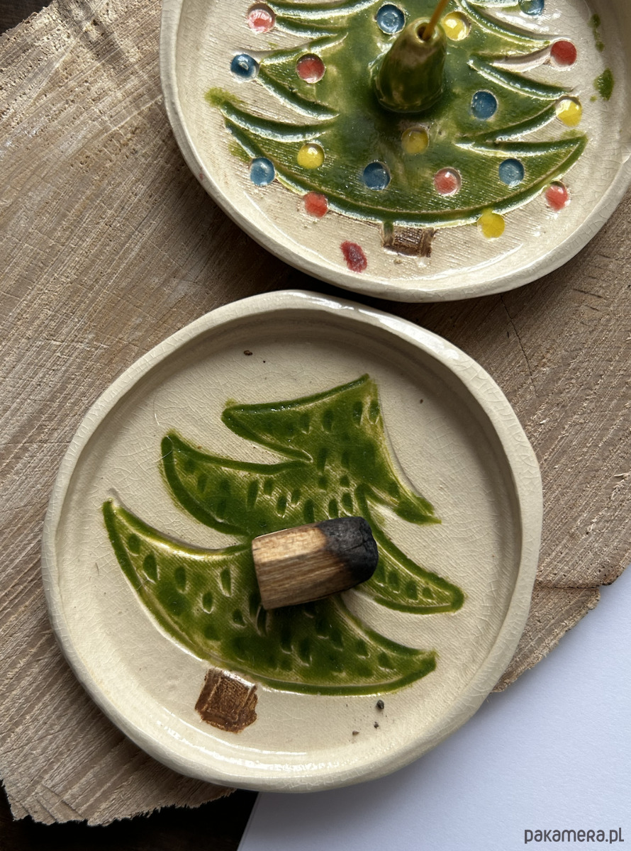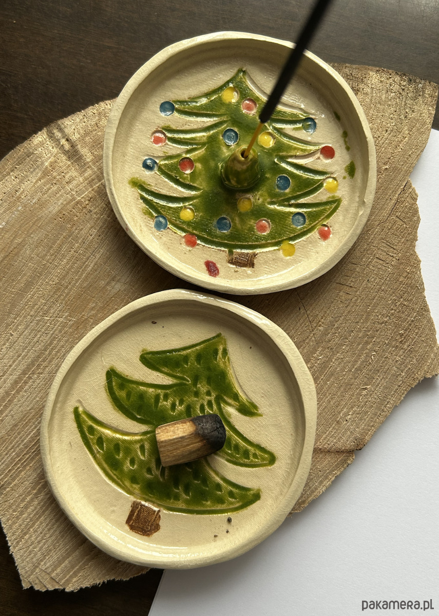 Ceramiczna postaweczka na kadzidełko wraz z talerzykiem na skarby.