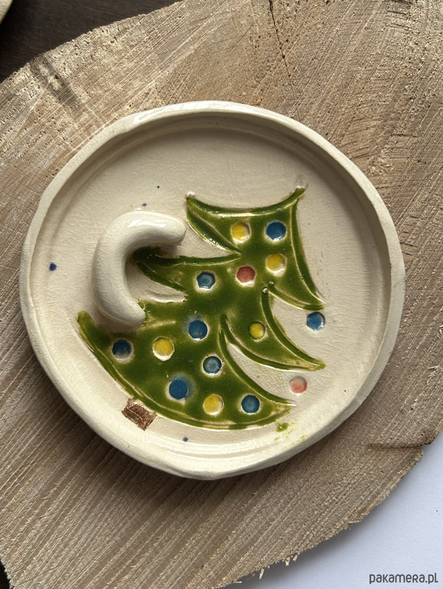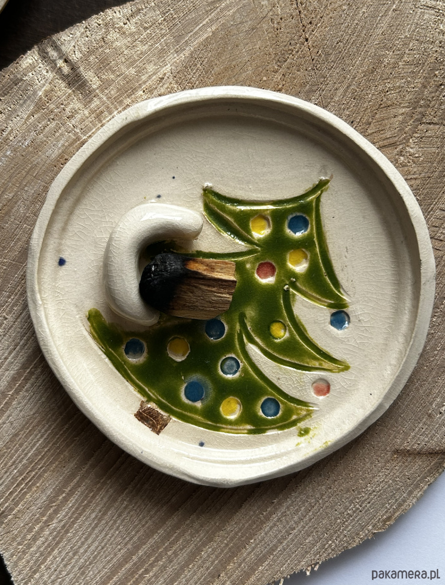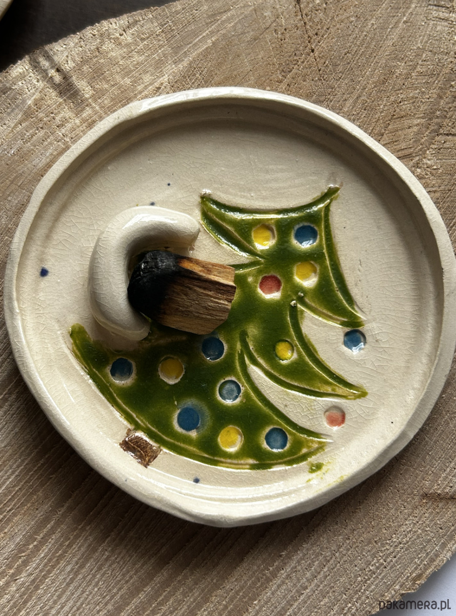 Ceramiczna podstawka na Palosanto. Szkliwiona wewnętrznie.