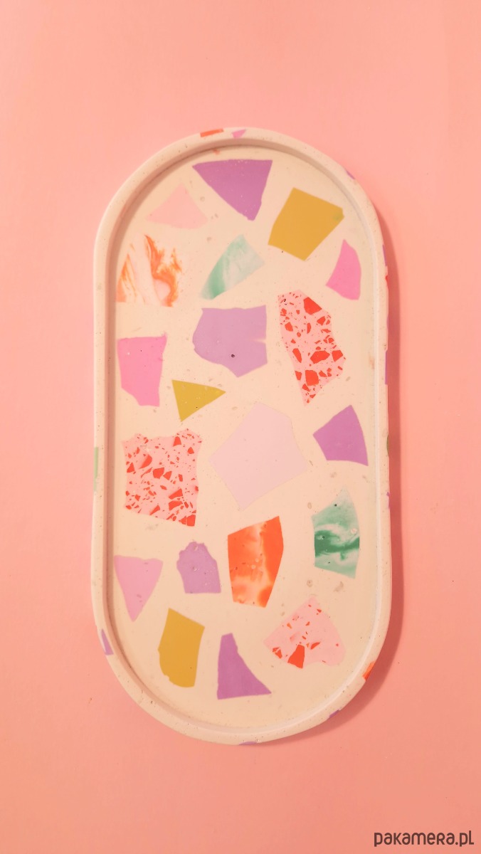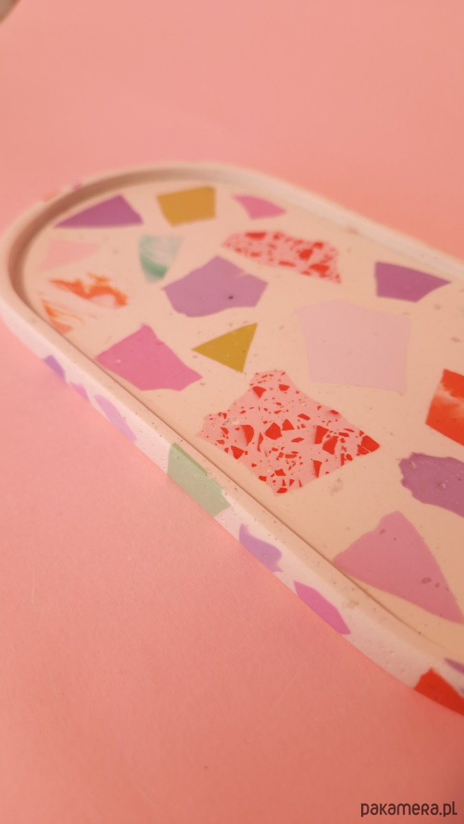 Podstawka owalna, kolorowe lastryko, duża taca, biała