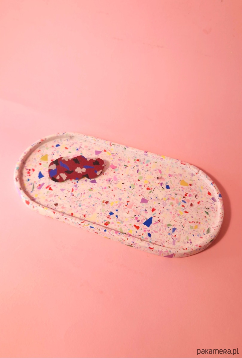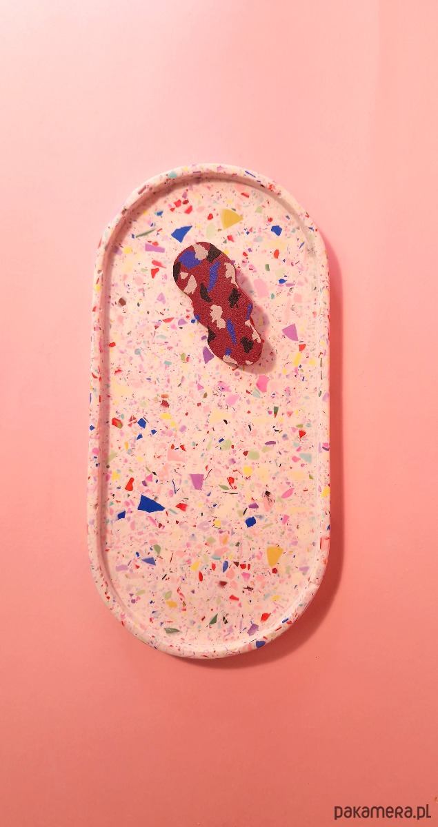 Podstawka owalna, kolorowe lastryko, duża taca, biała