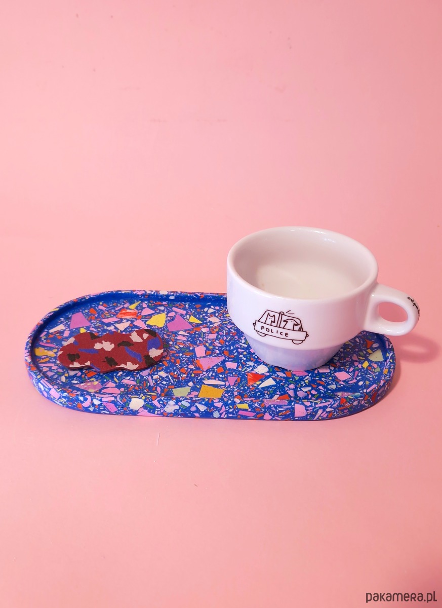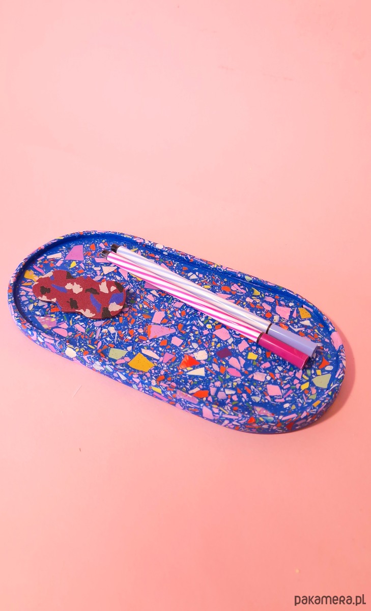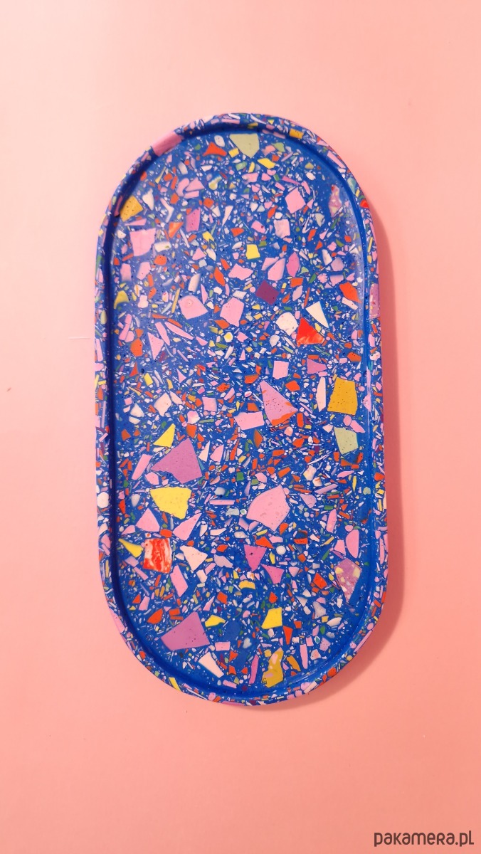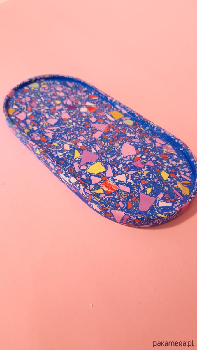 Podstawka owalna, kolorowe lastryko, duża taca, niebieska