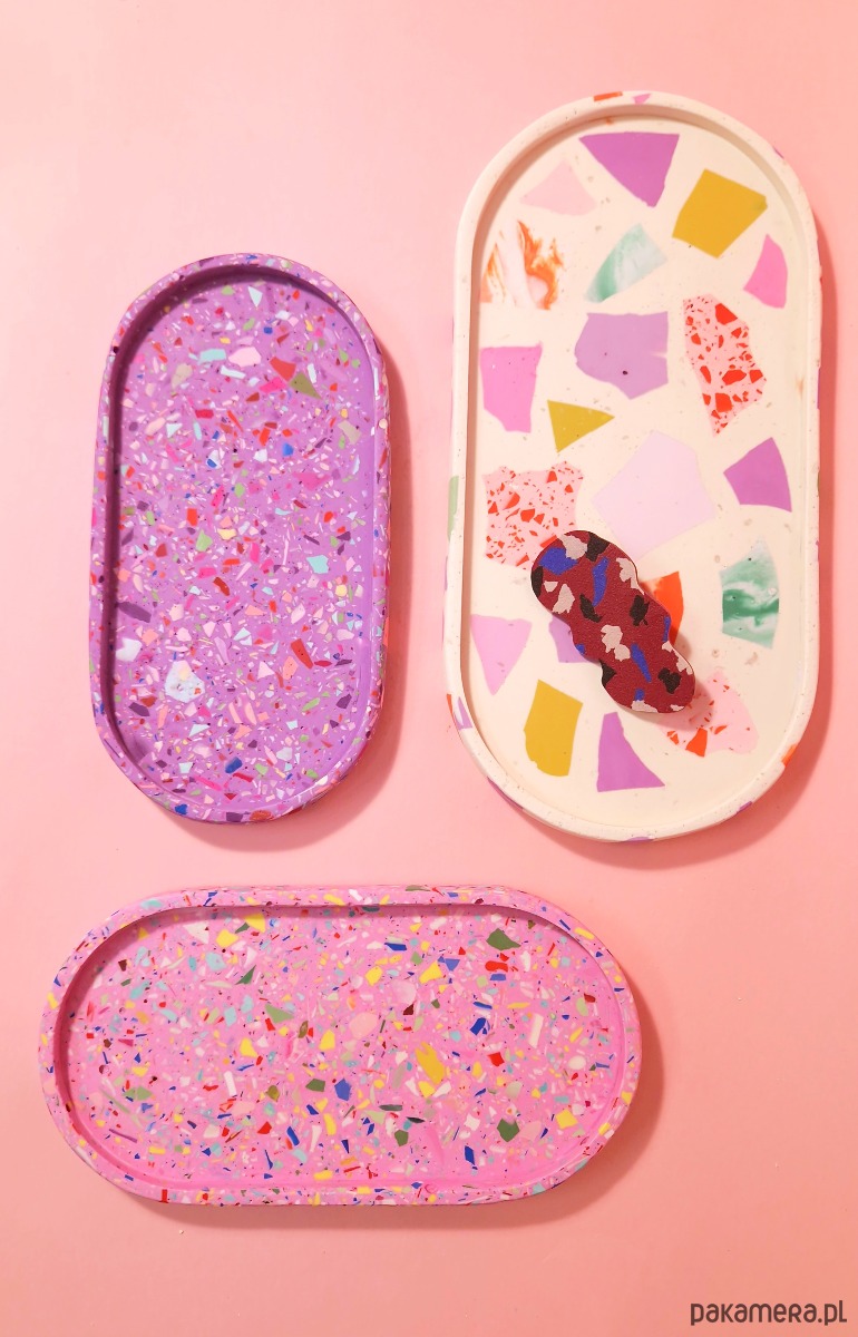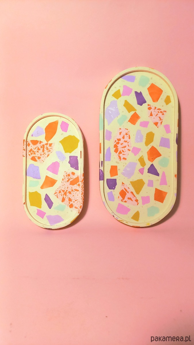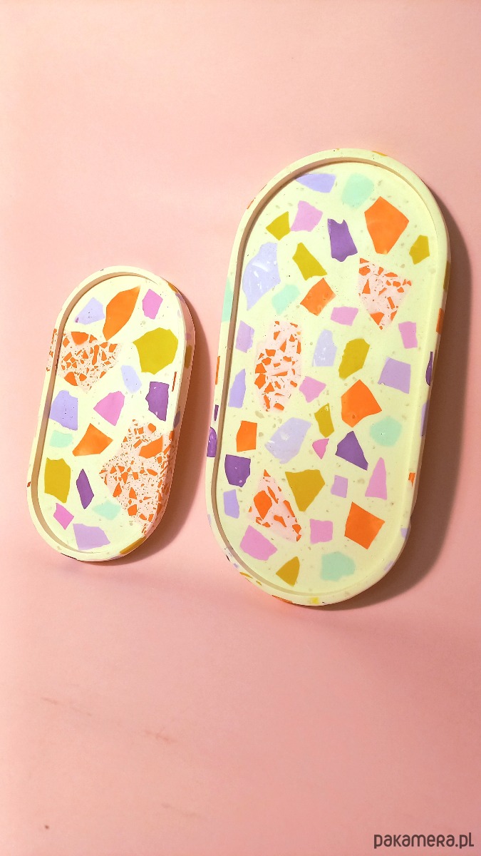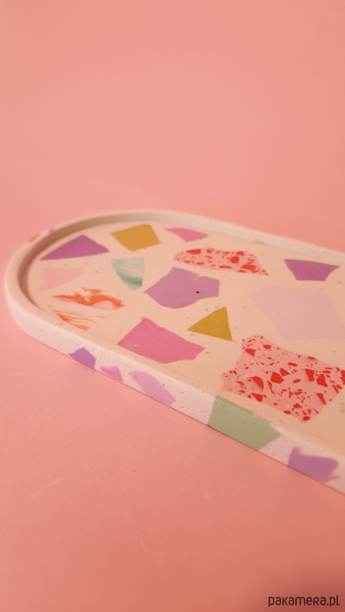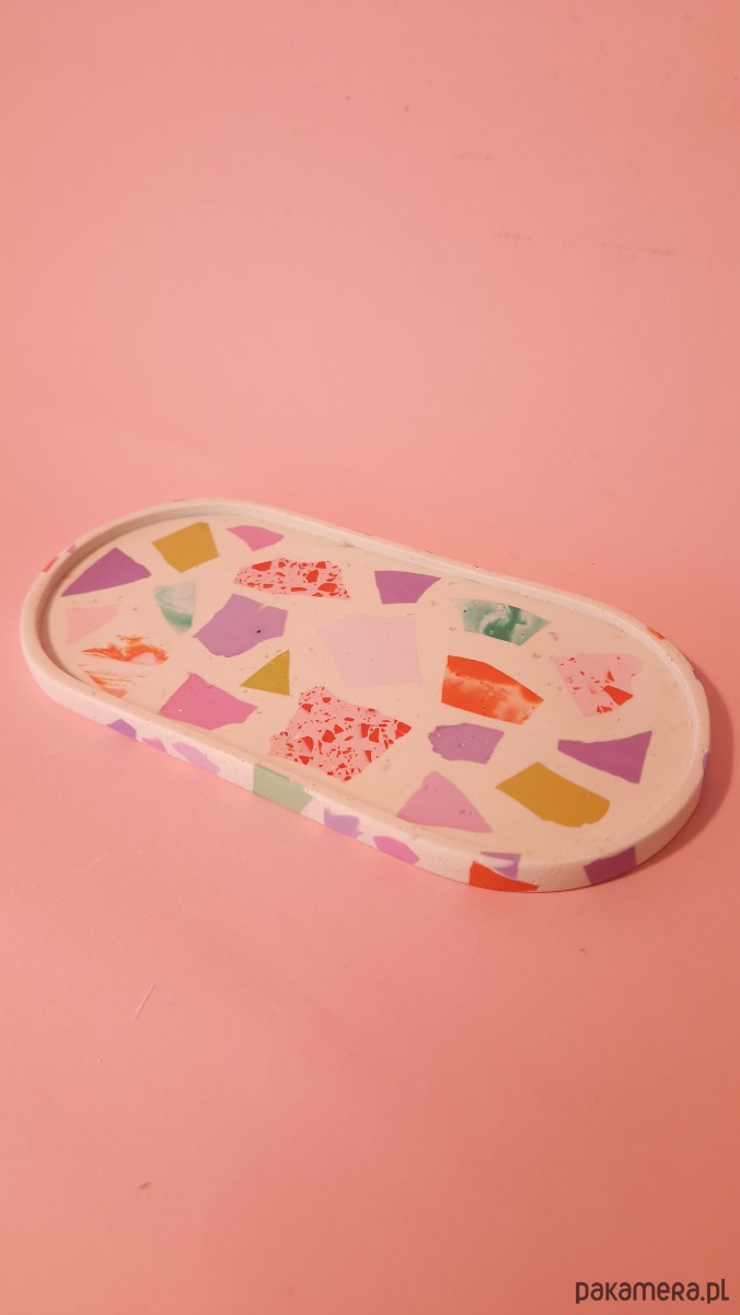 Podstawka owalna, kolorowe lastryko, mała taca, biała