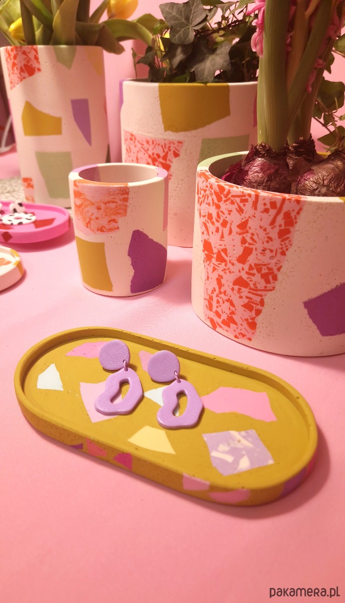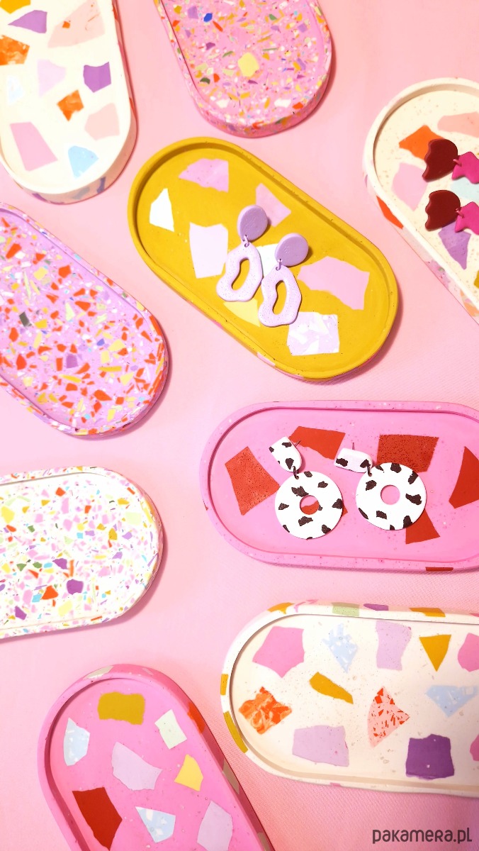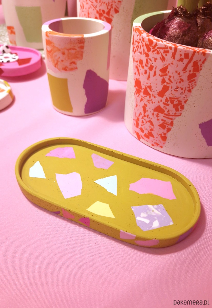 Podstawka owalna, kolorowe lastryko, mała taca, musztardowa