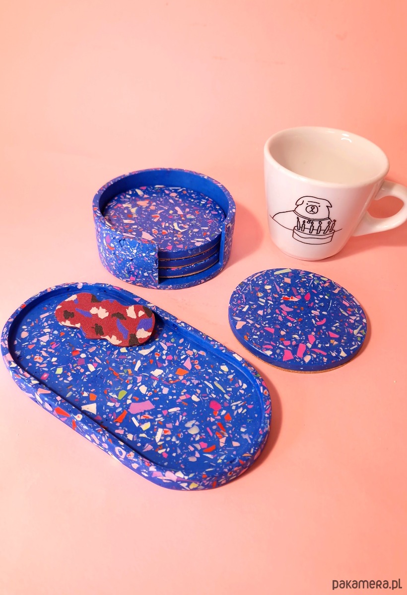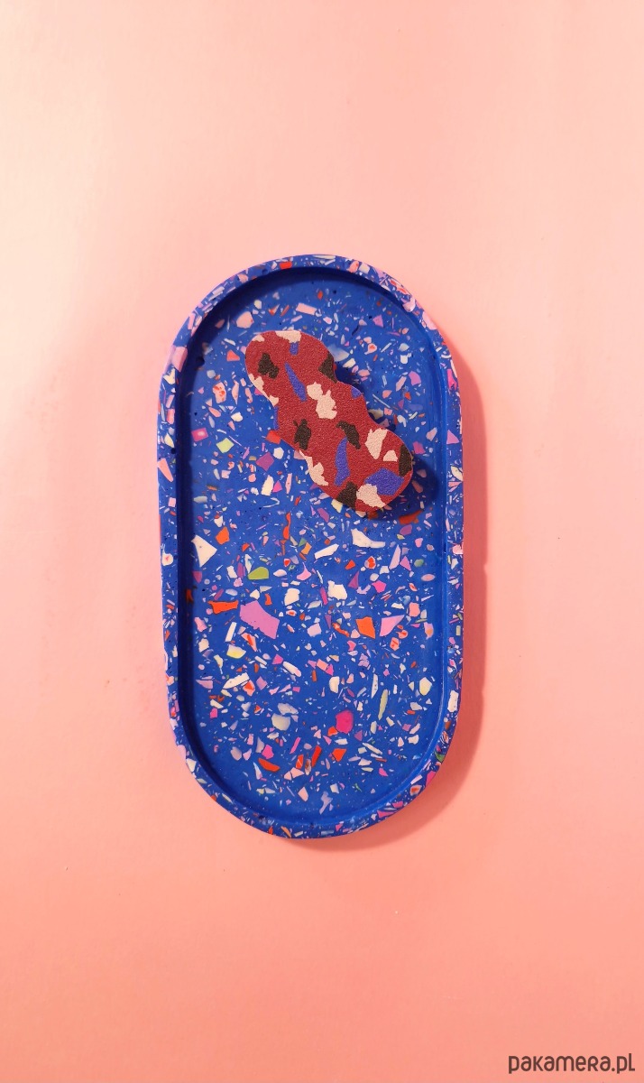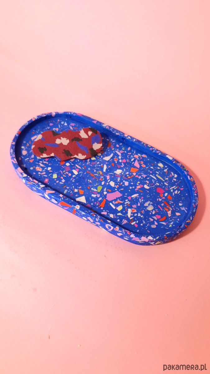 Podstawka owalna, kolorowe lastryko, mała taca, niebieska