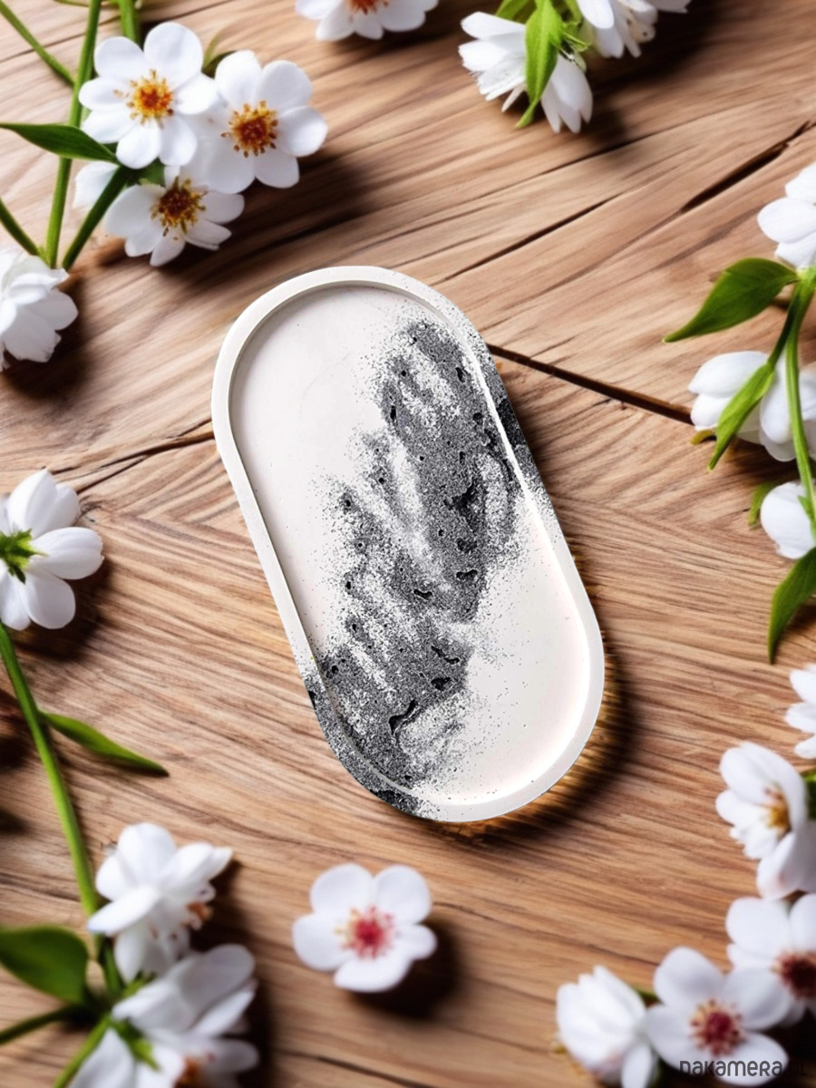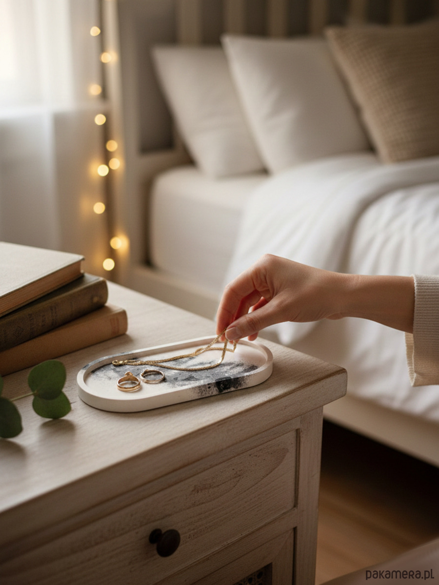 Wzbogać swoją przestrzeń do przechowywania biżuterii naszą elegancką podstawką owalną. Wykonana z gipsu polimerowego w naturalnym odcieniu, z subtelnym dodatkiem czarnego brokatu, ta podstawka dodaje wyrafinowanego uroku do Twojej toaletki. Idealna na przechowywanie pierścionków, kolczyków i bransoletek, nasza podstawa pozwoli Ci utrzymać ulubione dodatki w porządku i stylu. Odkryj harmonię elegancji i funkcjonalności dzięki naszej podstawce owalnej na biżuterię.